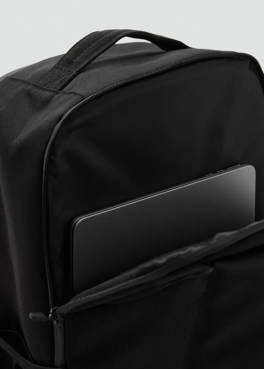 Hlavní přihrádka na zip. Přihrádka na elektronická zařízení. Kapsa na přední straně. Více kapes. Horní popruh. Dvě nastavitelné rukojeti.