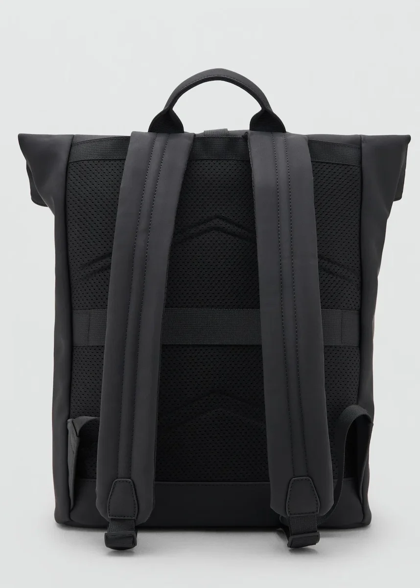 Gumovaná tkanina. Dvě nastavitelné rukojeti. Vnitřní kapsa na elektronická zařízení do šířky 25 cm. Páskové ucho pro snadnou přepravu jako příruční zavazadlo. Uzávěr s karabinou a nastavitelným popruhem. Více kapes.