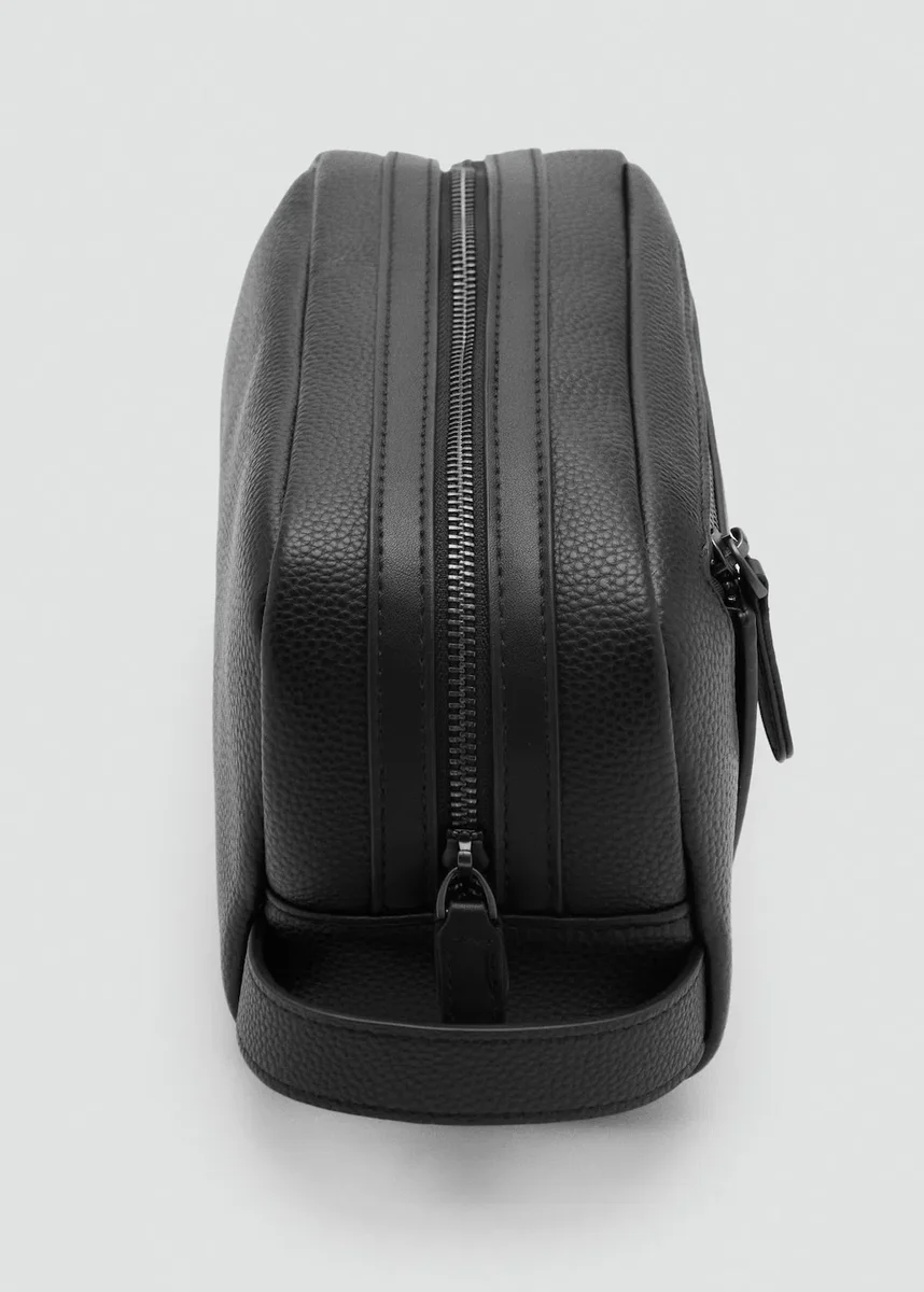 Rukojeť. Toaletní taška. Zapínání na zip. Kapsa na zip.