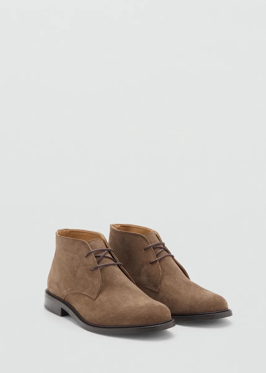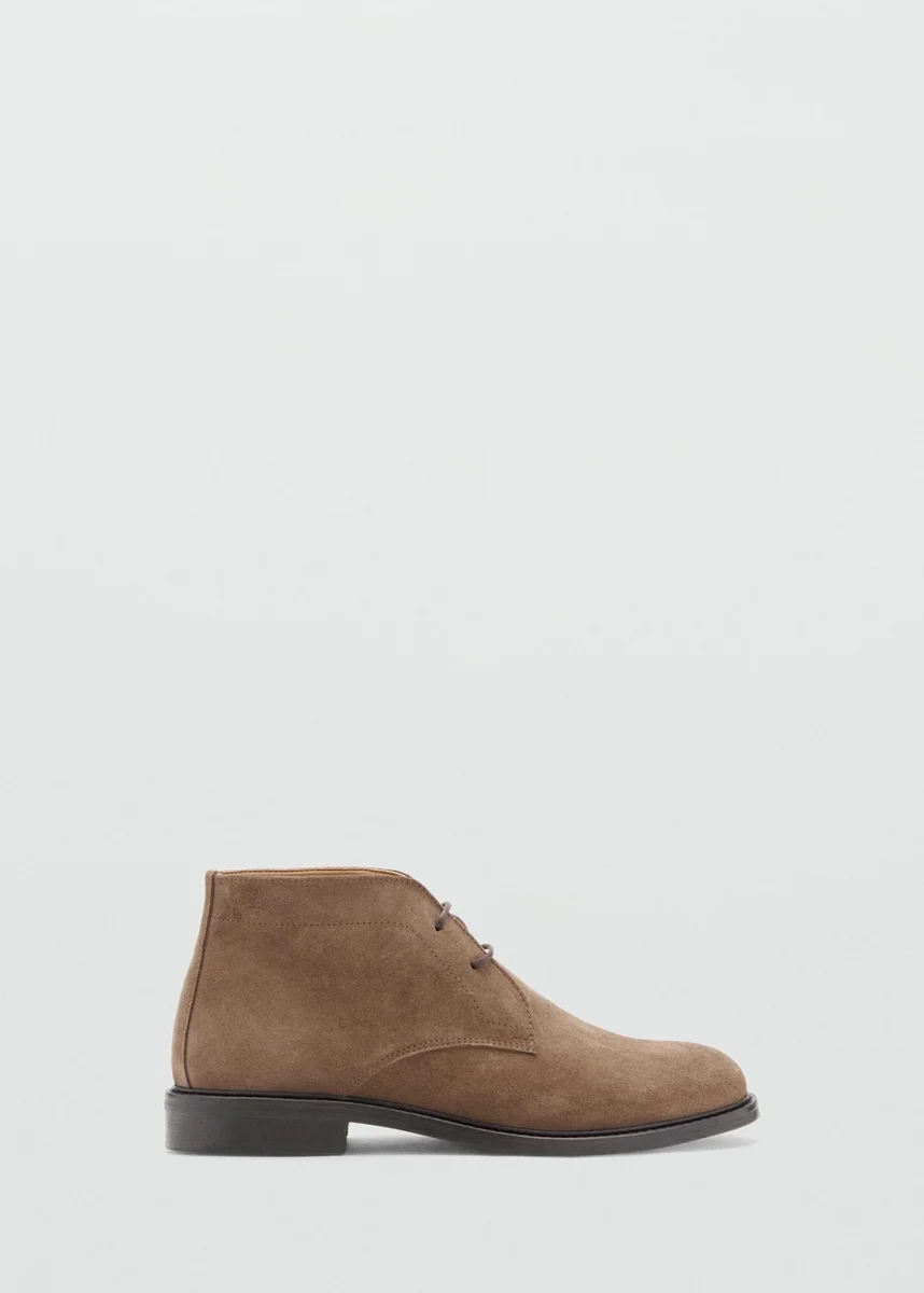 Semiš. Šněrování se dvěma polohami. Detaily se zadním prošíváním. Kontrastní podrážka.