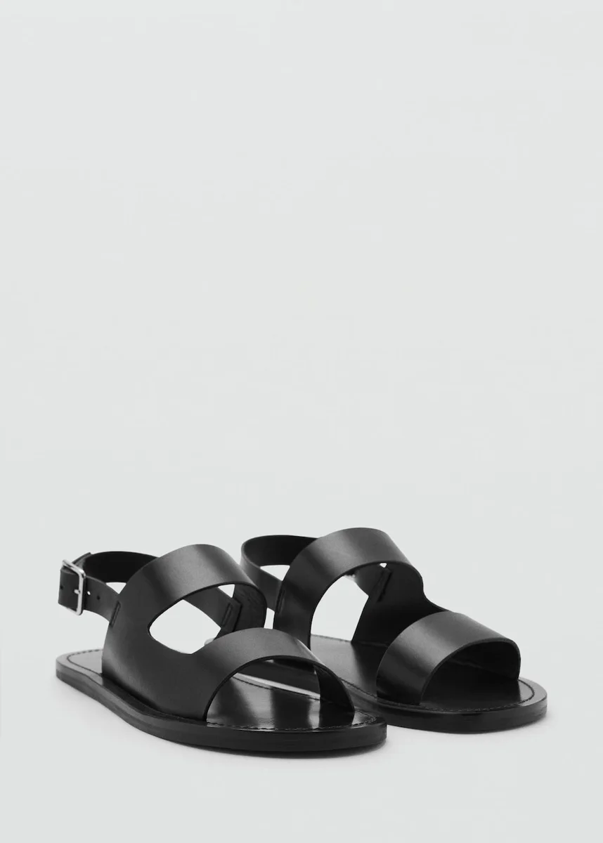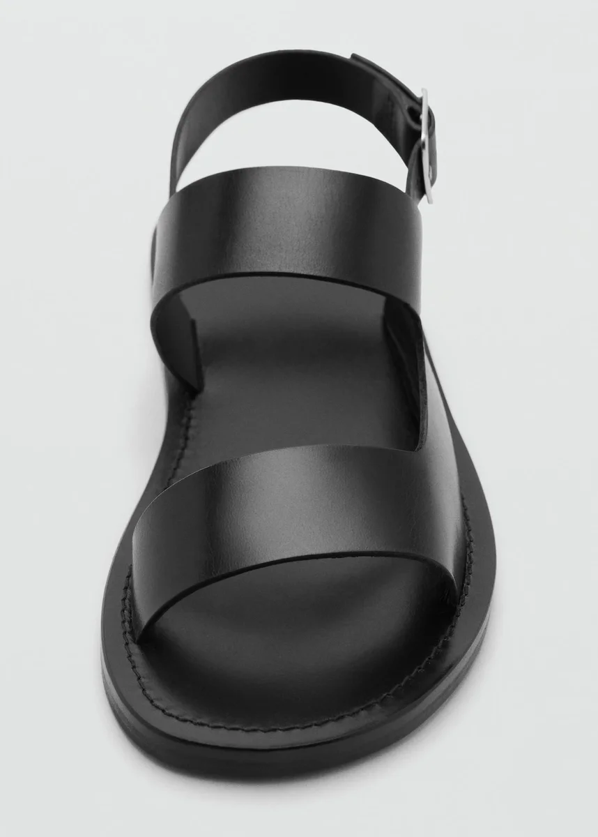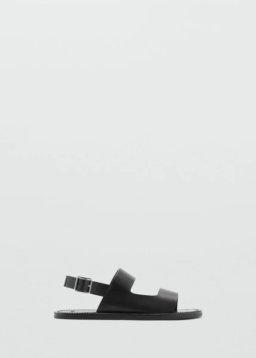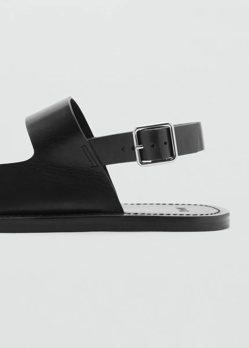 100 % hovězí kůže. Design s pásky. Zapínání na přezku vzadu. Kožená stélka.