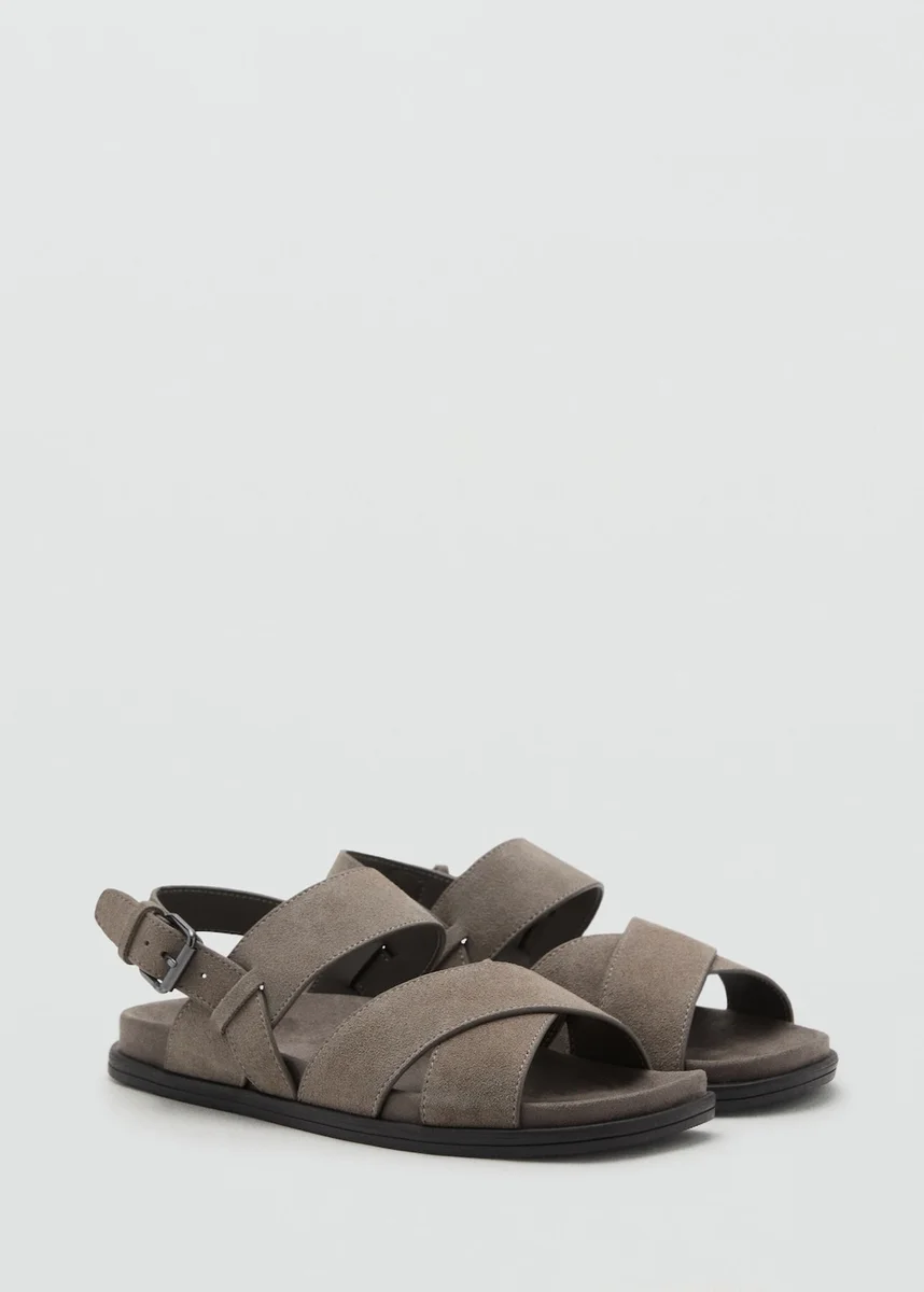 100 % hovězí kůže. Design s kříženými pásky. Nastavitelná spona vzadu.