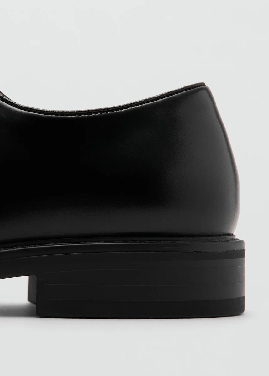 Umělá kůže Nappa. Klasický střih typu blucher. Pětipáskové šněrování. Detaily se zadním prošíváním. Kulatá špička. Podešev ve stejné barvě