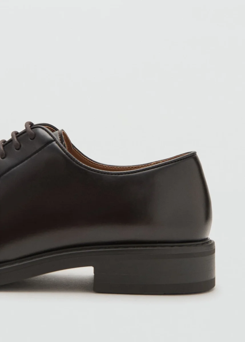 Umělá kůže Nappa. Klasický střih typu blucher. Pětipáskové šněrování. Detaily se zadním prošíváním. Kulatá špička. Podešev ve stejné barvě.