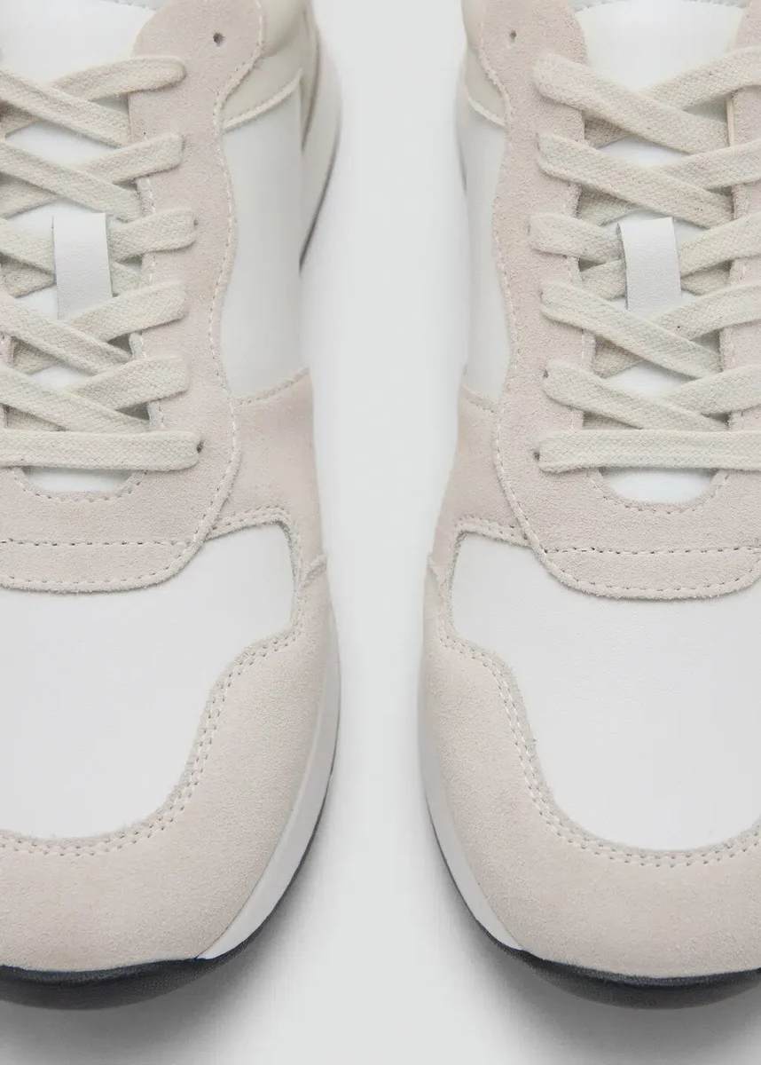 Běžecký styl. Kožené detaily. Kombinovaný design. Kulatá špička. Šestikrát šněrování. Zubatá gumová podrážka