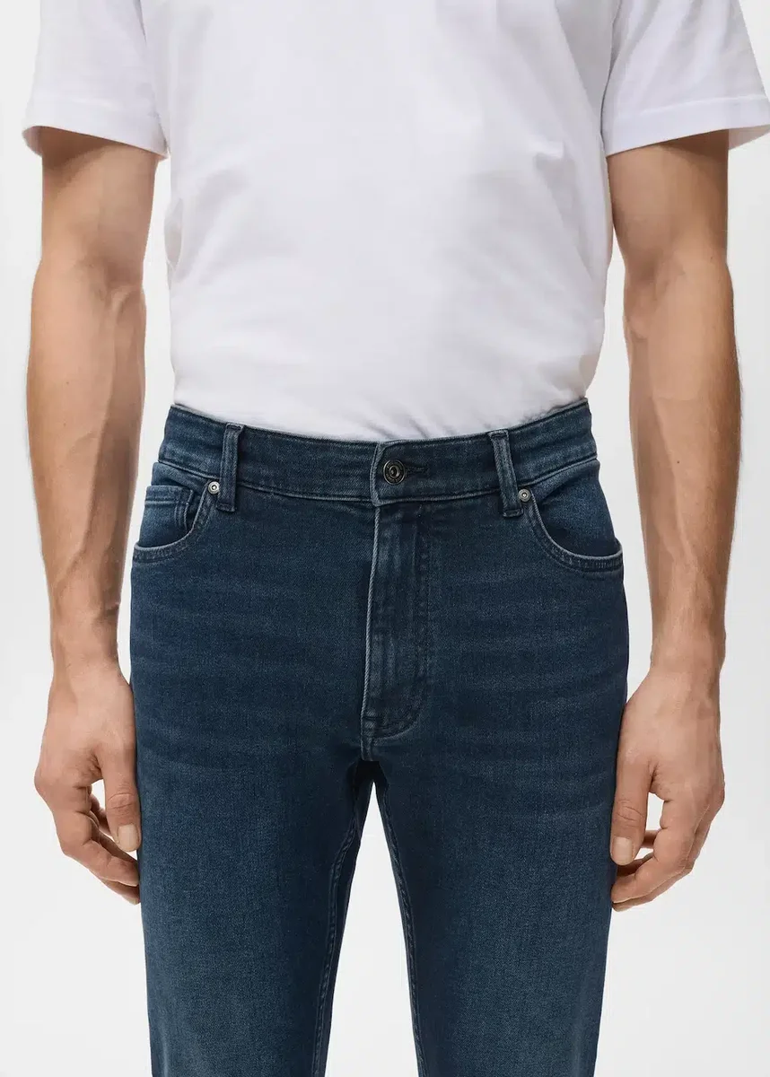 Skinny fit: nejtěsnější džíny. Bavlněná džínovina. Tmavá barva. Poutka na opasek. Zapínání na zip a knoflík. Dvě boční kapsy. Kapsa na mince. Dvě našité kapsy vzadu