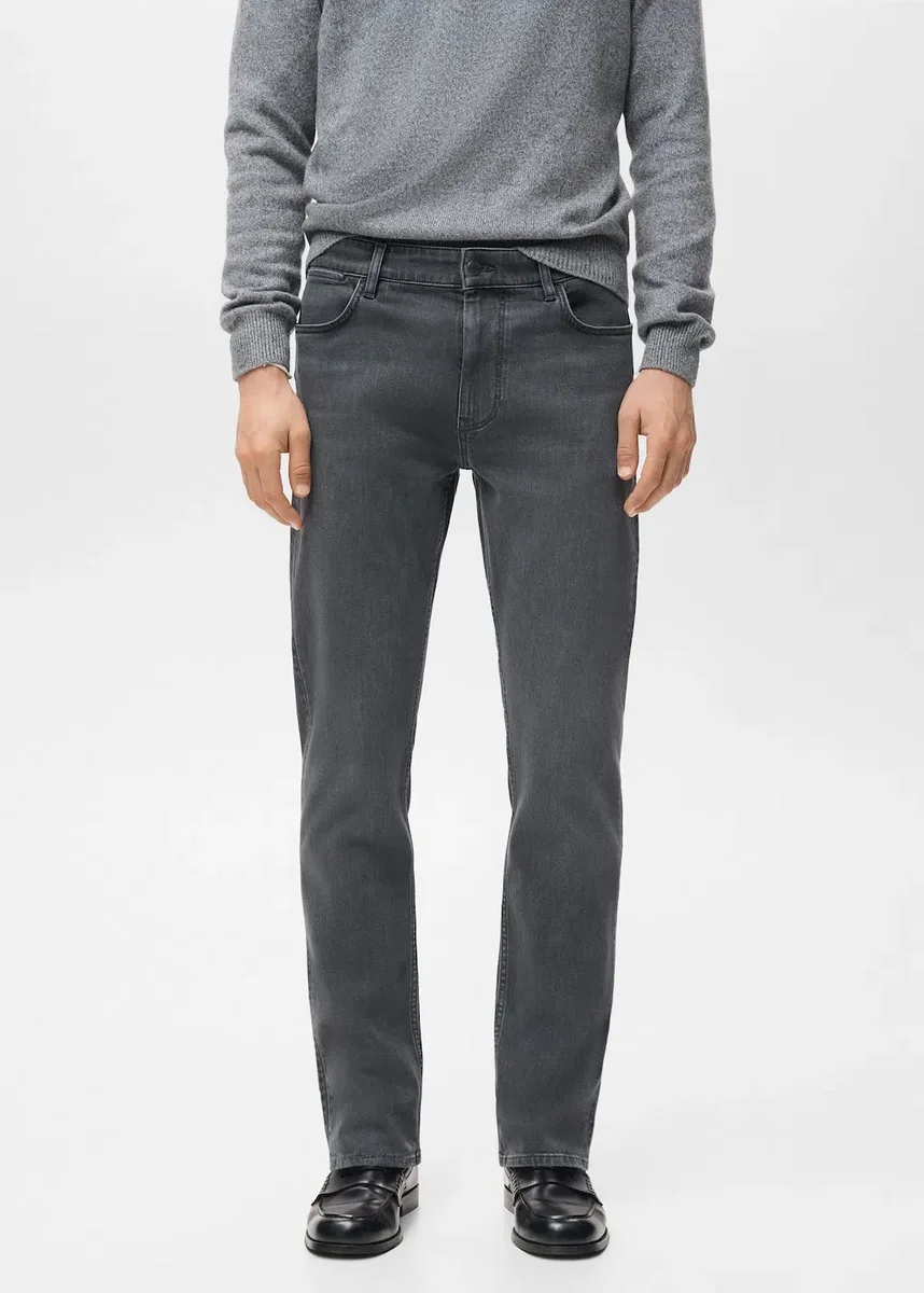 Úzký střih. Bavlněná tkanina. Měkká tkanina. Dvě boční kapsy. Kapsa na mince. Dvě našité kapsy vzadu. Poutka na opasek. Zapínání na zip a knoflík.
