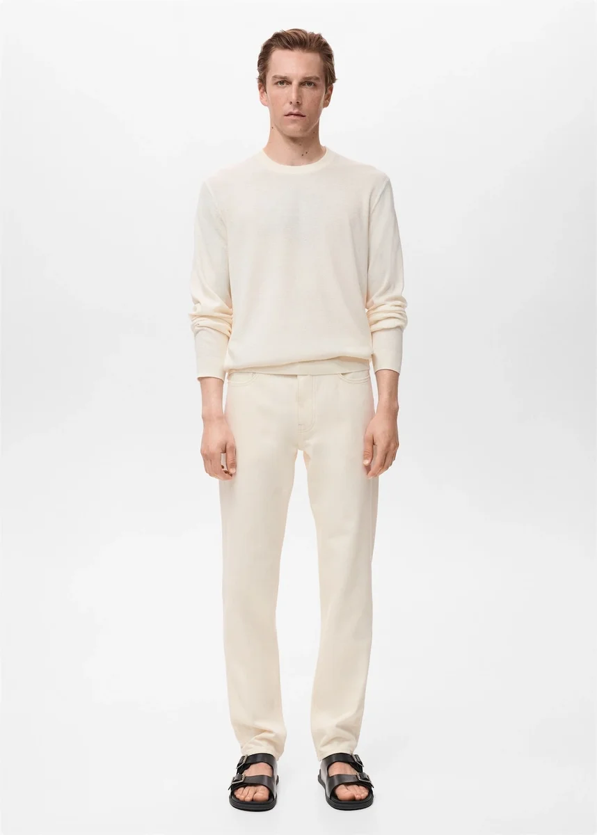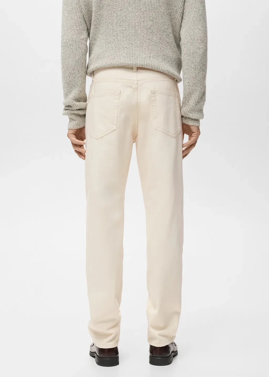 Regular fit. Bavlněná džínovina. Středně vybledlá barva. Zapínání na zip a knoflík. Poutka na opasek. Dvě boční kapsy. Kapsa na mince. Dvě našité kapsy vzadu.