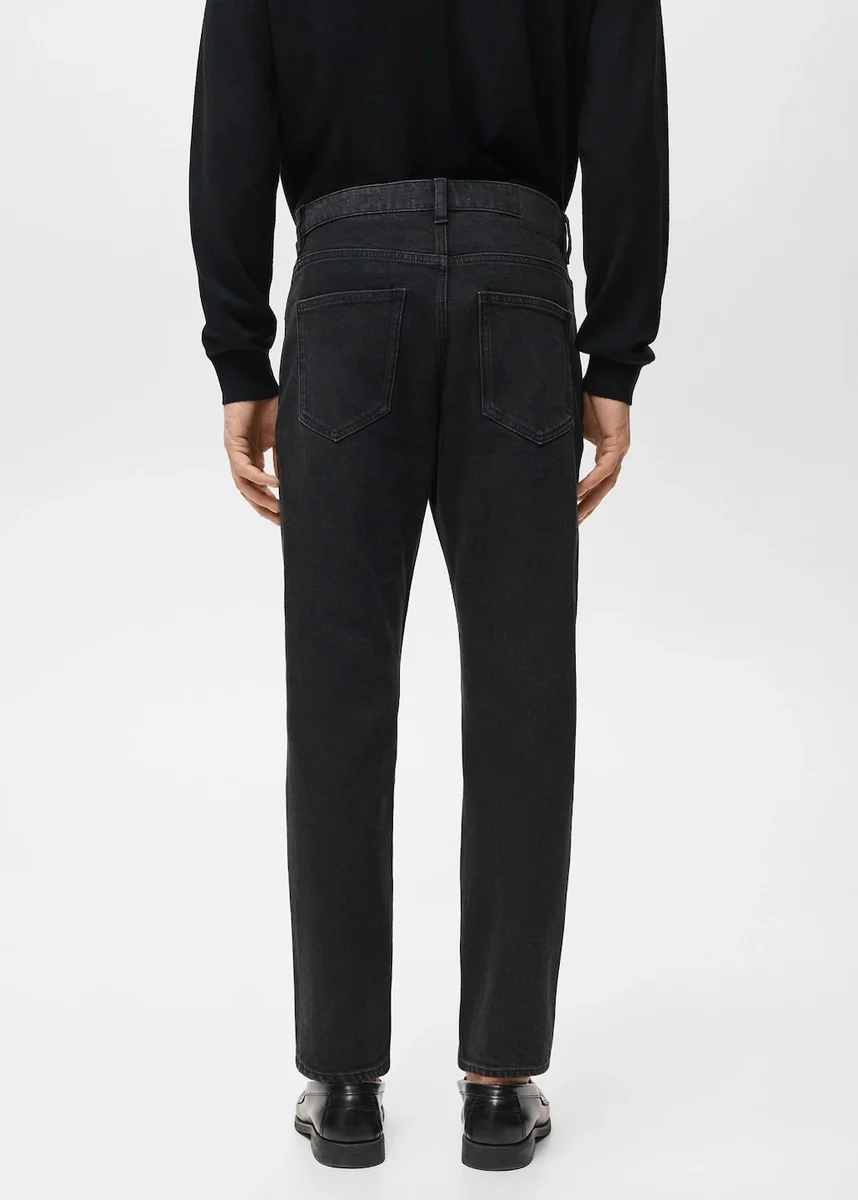 Zúžený střih: široký střih v horní části, který se zužuje od kolen k kotníkům. Bavlněná tkanina. Styl džínových kalhot. Poutka na opasek. Zapínání na zip a knoflík. Dvě boční kapsy. Kapsa na mince. Dvě našité kapsy vzadu. Zapínání na zip a knoflík vpředu