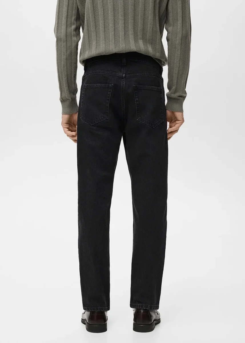 Zúžený střih: široký střih v horní části, který se zužuje od kolen k kotníkům. Bavlněná tkanina. Styl džínových kalhot. Poutka na opasek. Zapínání na zip a knoflík. Dvě boční kapsy. Kapsa na mince. Dvě našité kapsy vzadu. Bavlněná tkanina. Bavlněná džínovina. Zapínání na zip a knoflík vpředu. Černá barva. Poutka na opasek. Dvě přední kapsy. Zúžený střih