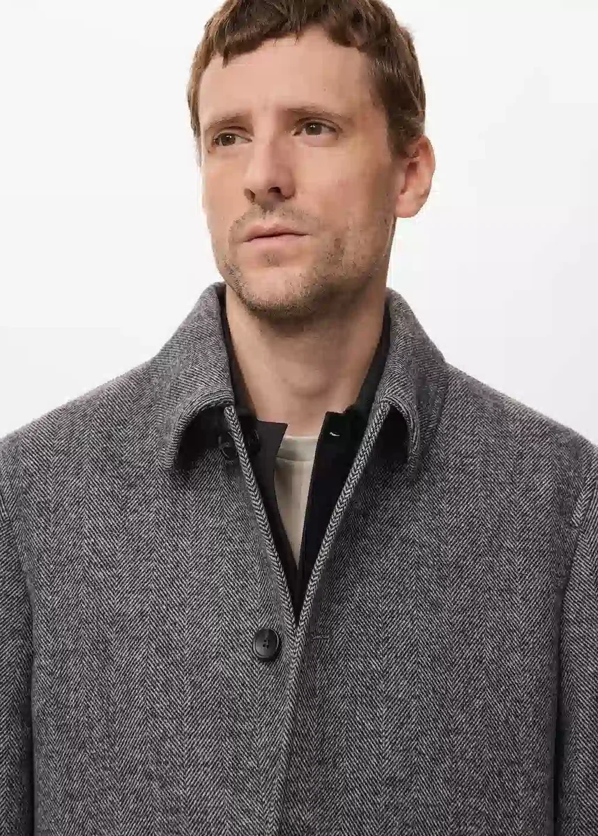 Kolekce Party. Směsová vlna. Rovný střih. Rybí kost. Klopový límec. Dvě boční kapsy. S vnitřní podšívkou. Dlouhé rukávy s manžetami na knoflíky. Zadní rozparek na spodním lemu. Zapínání na knoflíky vpředu.