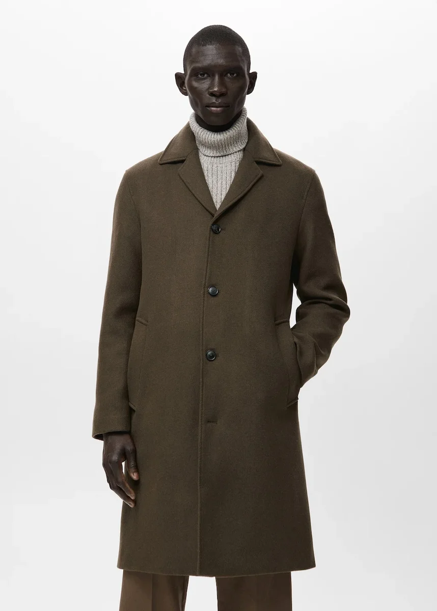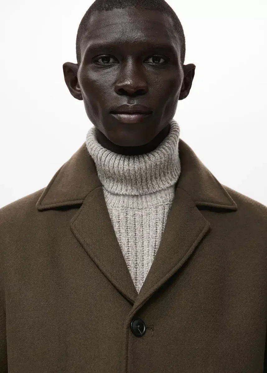 Volný střih. Dlouhý střih. Směsová vlna. Klopový límec a knoflíková dírka. Dvě boční kapsy. Dlouhé rukávy. Vnitřní podšívka. Vnitřní kapsa. Rozparek vzadu.