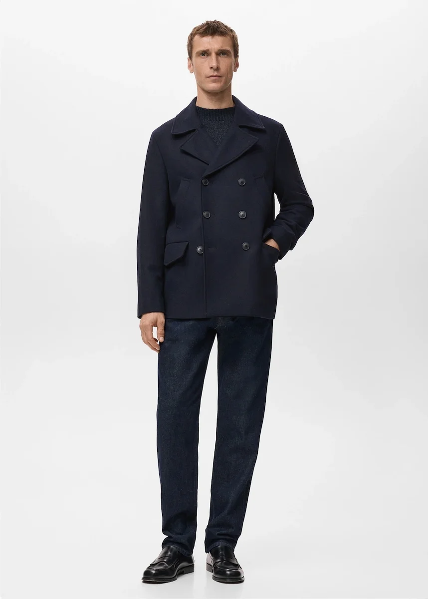 Krátký dvouřadový vlněný kabát