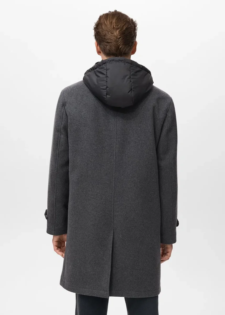 Barva šedá je k dispozici výhradně online. Směsová vlna. Rovný střih. Odnímatelná kapuce. Zapínání na zip. Zadní rozparek na lemu. Zapínání na knoflíky vpředu.