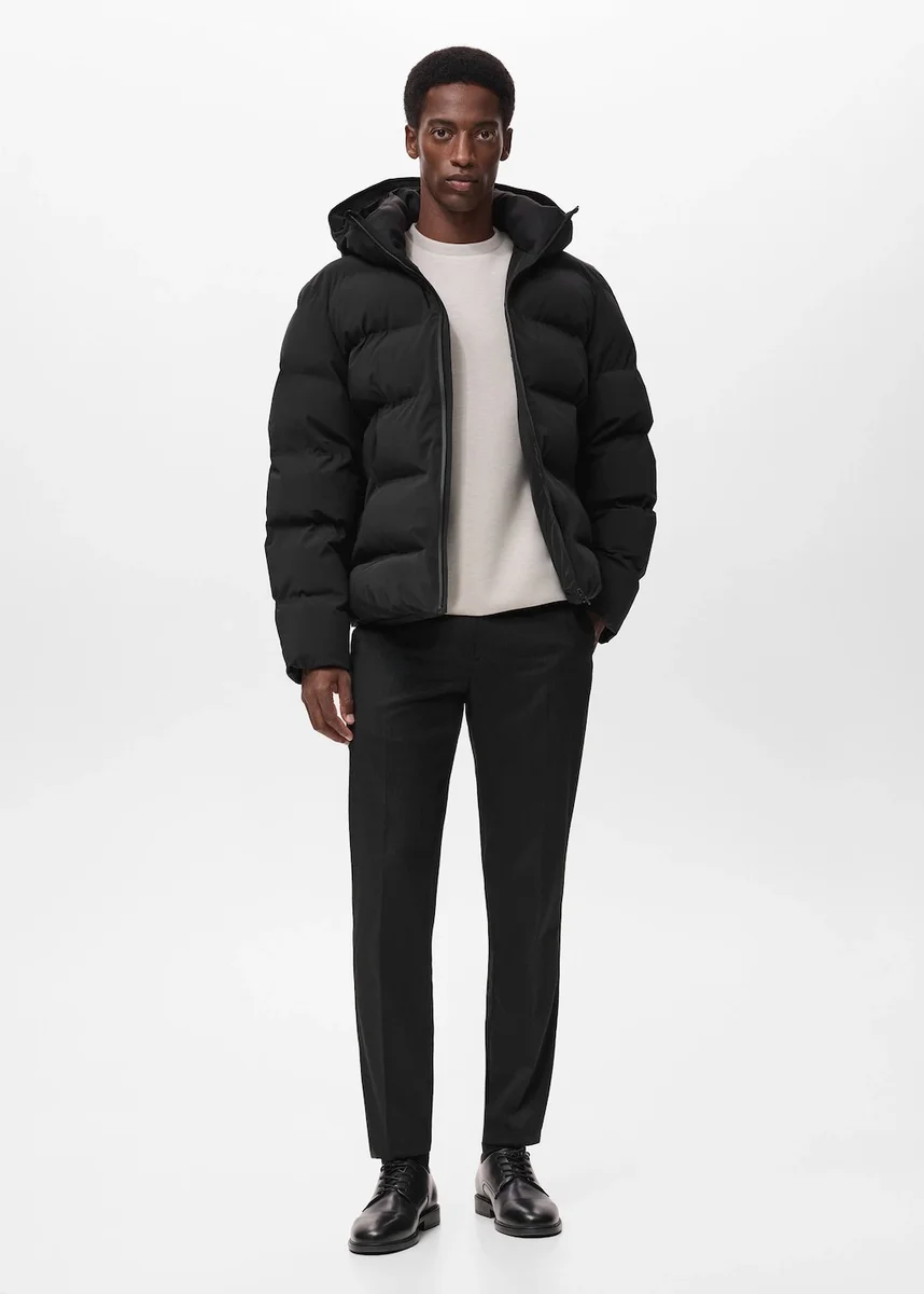 Modrá barva je exkluzivně k dispozici online. Prošívaný design. Oděv vyrobený z vodoodpudivé tkaniny. THERMOLITE®: tkanina, která díky technologii vláken nabízí tepelnou izolaci a prodyšnost. Termoregulátor: Tato tkanina nabízí optimální prodyšnost, aby vám zajistila stabilní teplotu. Kapuce se stahovací šňůrkou. Dlouhé rukávy. Dvě přední kapsy s tepelně lepeným zakončením. Vnitřní kapsa. Přední zapínání na tepelně lepený zip. Lem s nastavitelnou vnitřní stahovací šňůrkou. Složení: 88 % polyamid, 12 % elastan Podšívka: 100 % polyamid Podšívka rukávů: 100 % polyamid Límec: 92 % polyester, 8 % elastan Výplň: 100 % polyester Manžety: 92 % polyester, 8 % elastan