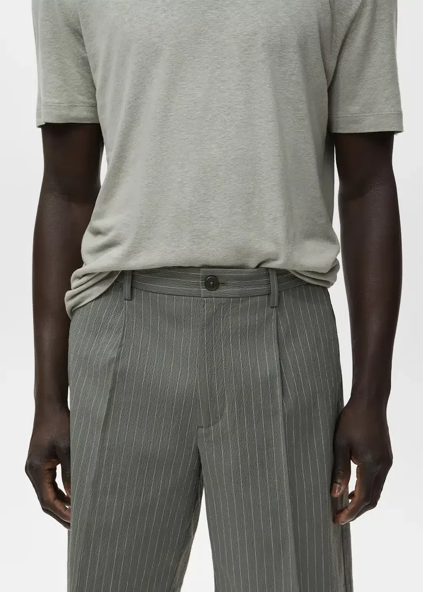 Bavlněná tkanina. Styl chino. Poutka na opasek. Elastický pas. Dvě boční kapsy. Kapsa s knoflíkem na zadní straně. Zapínání na zip a knoflík