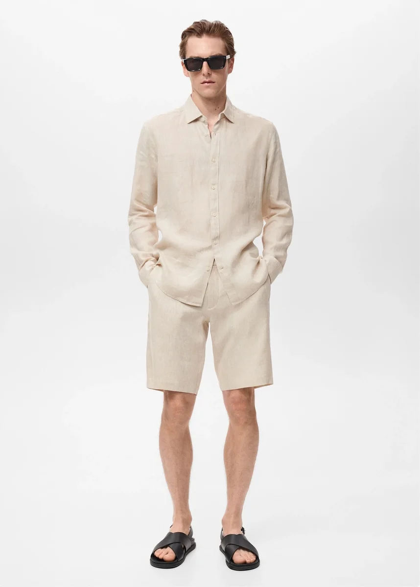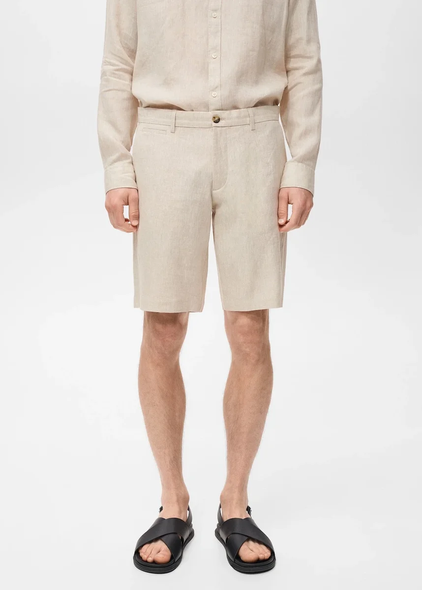 Úzký střih 100% lněné bermudy