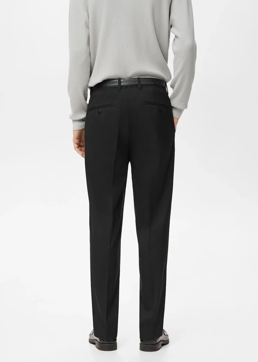 Kolekce Party. Tkanina ze směsi viskózy. Rovný střih. Detail předních a zadních kalhotek. Dvě boční kapsy. Dvě kapsy s knoflíkem vzadu. Poutka na opasek. Černý pátek