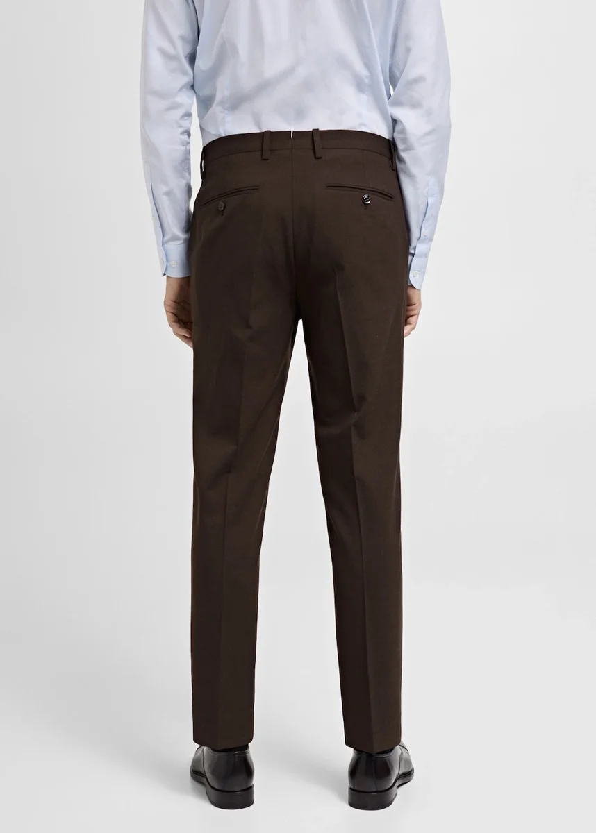 Kolekce Casper Ruud x Mango. Slim fit. 100 % vlna. Žehlené pruhy. Poutka na opasek. Dvě boční kapsy. Dvě zadní kapsy s lemováním. Zapínání na zip, háček a dva knoflíky vpředu. ESSENTIALS: Vyrobeno pro dlouhou životnost. Posílili jsme naše standardy kvality přidáním nových testů odolnosti našich oděvů. Jsou navrženy s pečlivým zohledněním jejich konstrukce, takže jsou ještě odolnější, univerzálnější a nadčasovější.