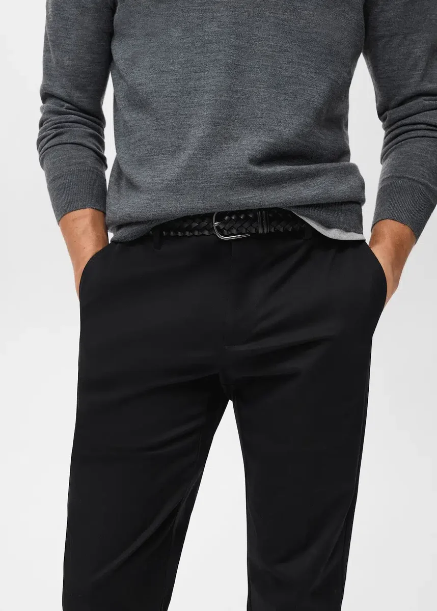 Bavlněná tkanina. Regular fit. Žehlené pruhy vpředu a vzadu. Zapínání na zip a knoflík vpředu. Poutka na opasek. Dvě boční kapsy. Dvě kapsy s knoflíkem vzadu. ESSENTIALS: Vyrobeno pro dlouhou životnost. Posílili jsme naše standardy kvality přidáním nových testů odolnosti našich oděvů. Jsou navrženy s pečlivým zvážením jejich konstrukce, takže jsou ještě odolnější, univerzálnější a nadčasové.
