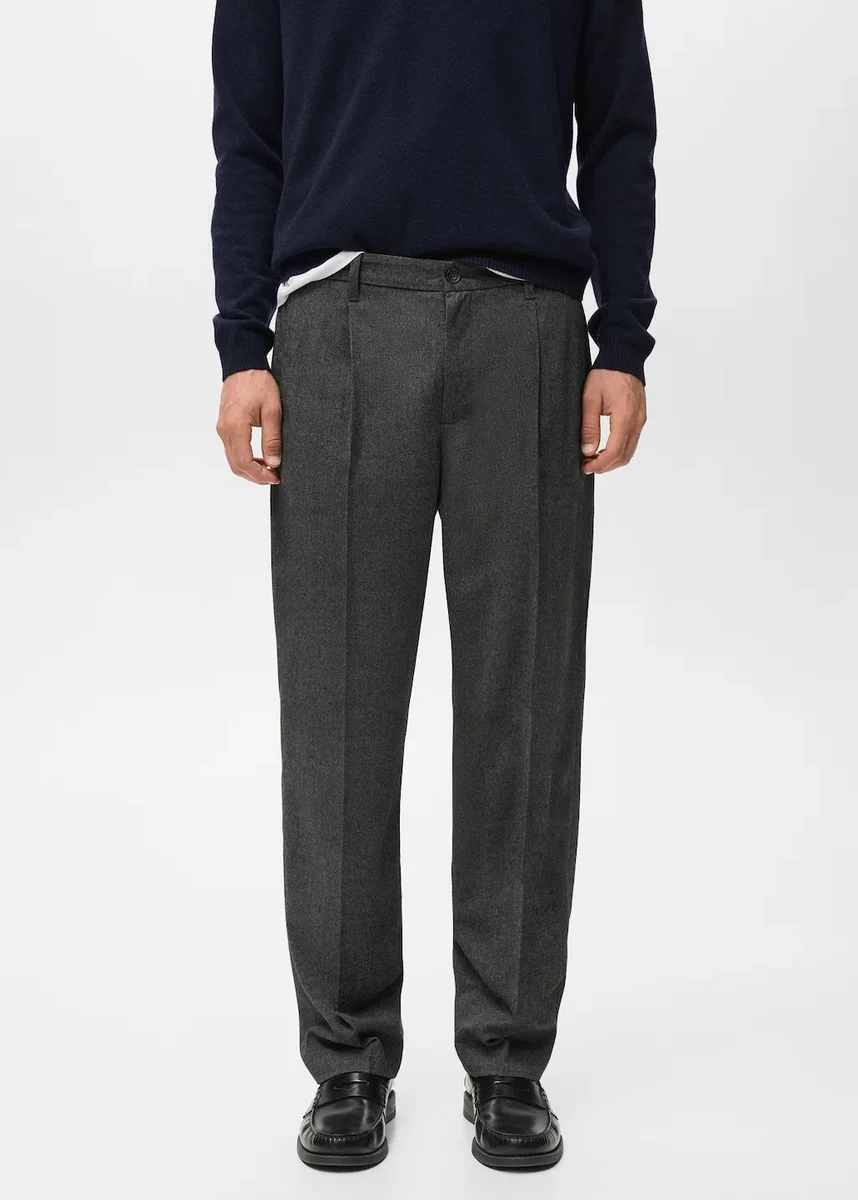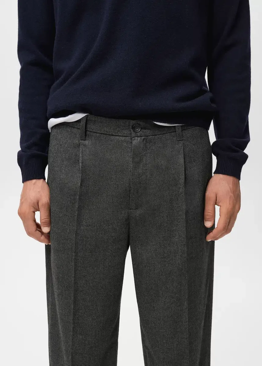 Regular fit. Flanelová tkanina. Detail předních a zadních kalhot. Regular Waist Rise. Elastický pas. Dvě kapsy s knoflíkem na zadní straně. Dvě boční kapsy.