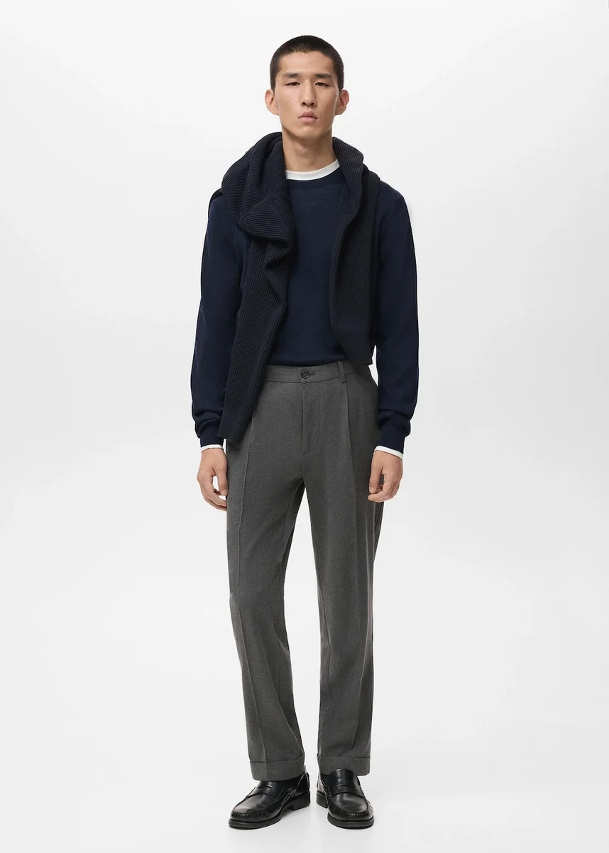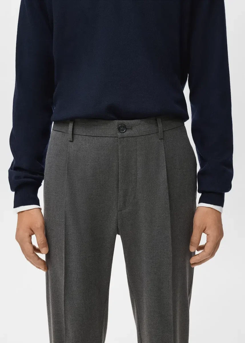 Kolekce Casper Ruud x Mango. Regular fit. Směsová vlna. Flanelová tkanina. Detail předního záhybu. Dvě boční kapsy. Poutka na opasek. Zapínání na zip a knoflík vpředu. Lem na spodním okraji.