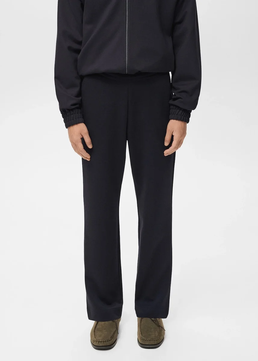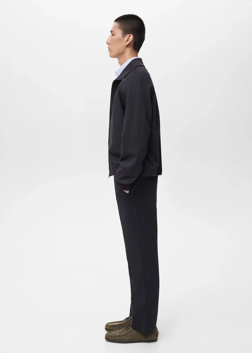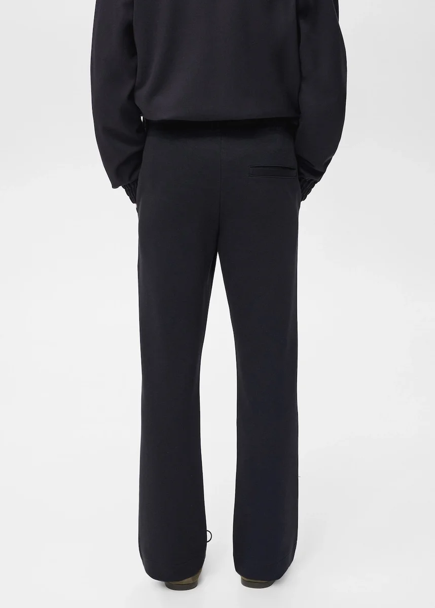 Bavlněná směsová tkanina. Joggerový střih. Rovný střih. Elastický pas s nastavitelnou vnitřní stahovací šňůrkou. Dvě boční kapsy. Zadní našitá kapsa.