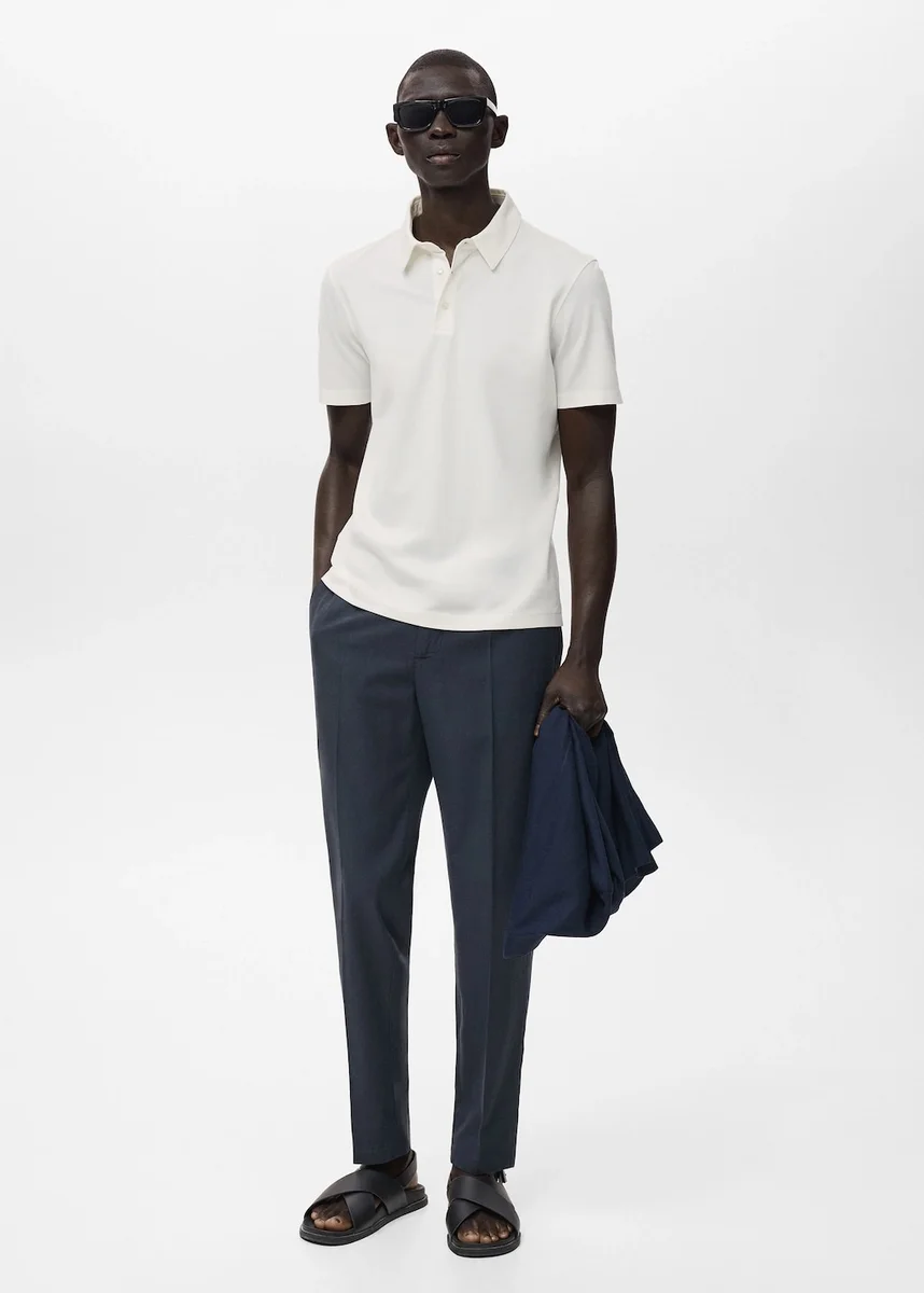 Zúžený střih: široký střih v horní části, který se zužuje od kolen k kotníkům. Krátký střih. Styl chino. Udržitelná směs bavlny. Poutka na opasek. Elastický pas. Boční kapsy. Kapsa na mince. Dvě kapsy s klopami na knoflíky na zadní straně. Zapínání na knoflík a šňůrku.