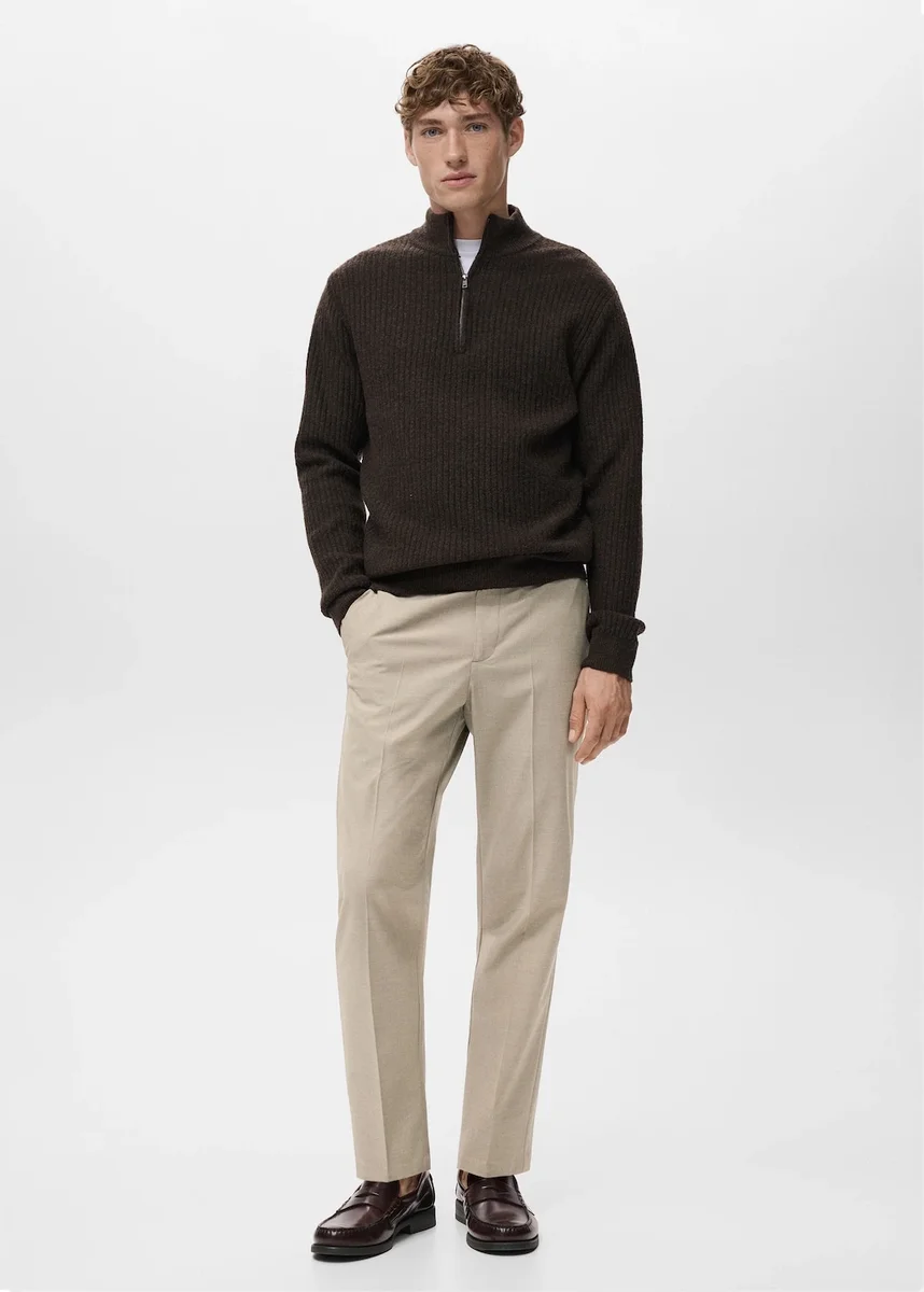 Khaki je exkluzivně k dostání online. Zkrácený střih. Slim fit. Zapínání na zip a knoflík. Poutka na opasek. Elastické řasení vzadu v pase. Dvě boční kapsy. Kapsa na mince ve výšce boků. Dvě zadní kapsy s lemováním.