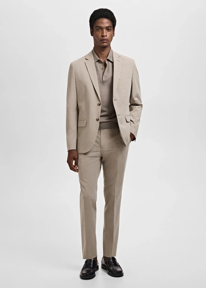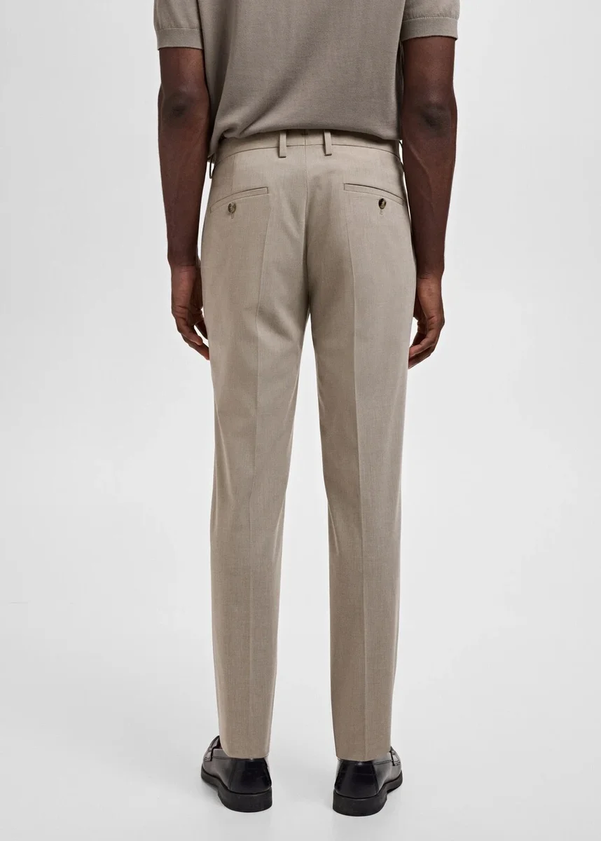 Úzký střih. Kolekce na míru. Poutka na opasek. Zapínání vpředu na dvojřadé knoflíky a zip. Boční kapsy. Dvě kapsy s patkou a knoflíkem vzadu. Žehlené pruhy vpředu a vzadu.Složení: 66 % polyester, 28 % viskóza, 6 % elastan. Podšívka: 65 % polyester, 35 % bavlna. Nelze prát. Nebělit. Žehlit maximálně na 110 °C. Čistit chemicky perchloroethylenem. Nesušit v sušičce. Slim fit. Kolekce Tailoring. Poutka na opasek. Zapínání vpředu na dvouřadé knoflíky a zip. Boční kapsy. Dvě kapsy s knoflíkem vzadu. Žehlený pruhový detail vpředu a vzadu