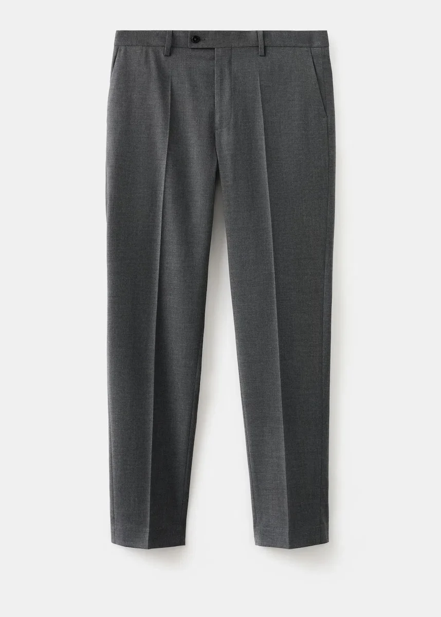 Standardní délka. Lehká plochá struktura. Slim střih. Zapínání vpředu. Normální výška pasu. Materiál odolný proti zmačkání. Bavlněný pocit. Zapínání na zip a knoflík. Lem se zipem. Zapínání vpředu. Střední výška pasu. Lehký materiál. Elastický pas. Dvě boční kapsy. Žehlené pruhy vpředu a vzadu. Standardní design. Úzký střih. Poutka na opasek. Zapínání na knoflík, háček a zip. Dvě kapsy s lemováním vzadu. Bavlněná směsová tkanina. Udržitelná tkanina Solotex vyrobená z 37 % biomasy, která je velmi měkká na dotek a má vysokou tvarovou paměť. Solotex® je materiál, který poskytuje hladkou texturu. Je také vysoce prodyšný a snadno se udržuje, proto lze tento oděv prát v pračce.