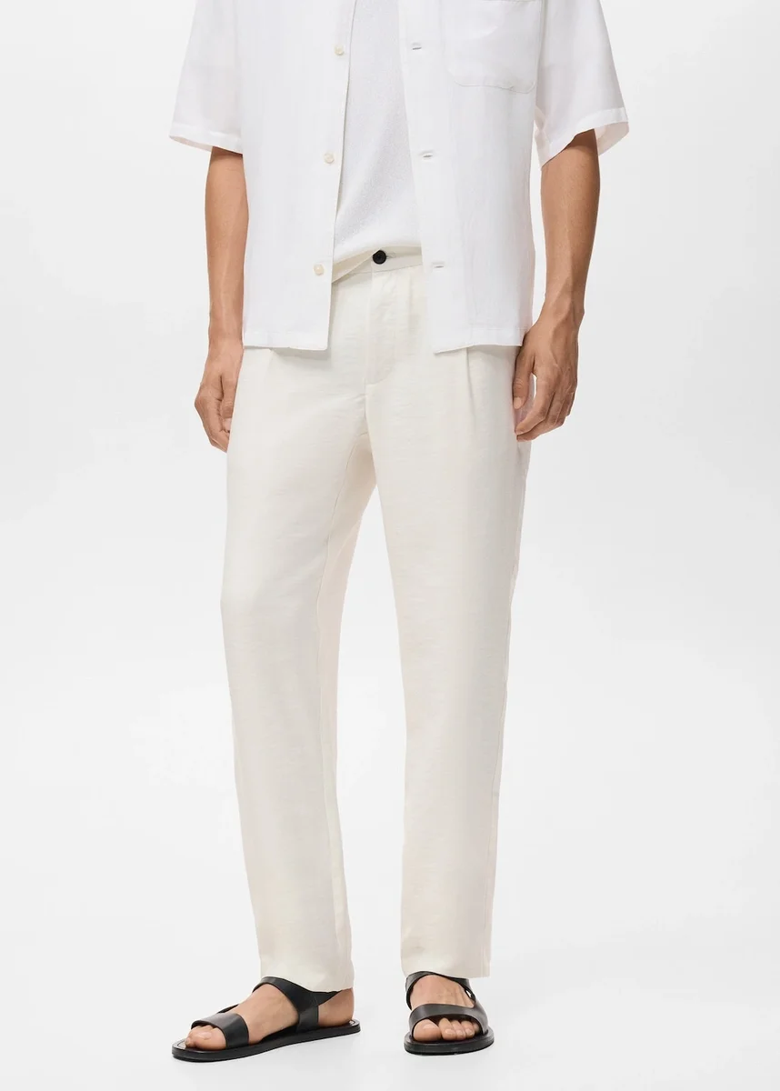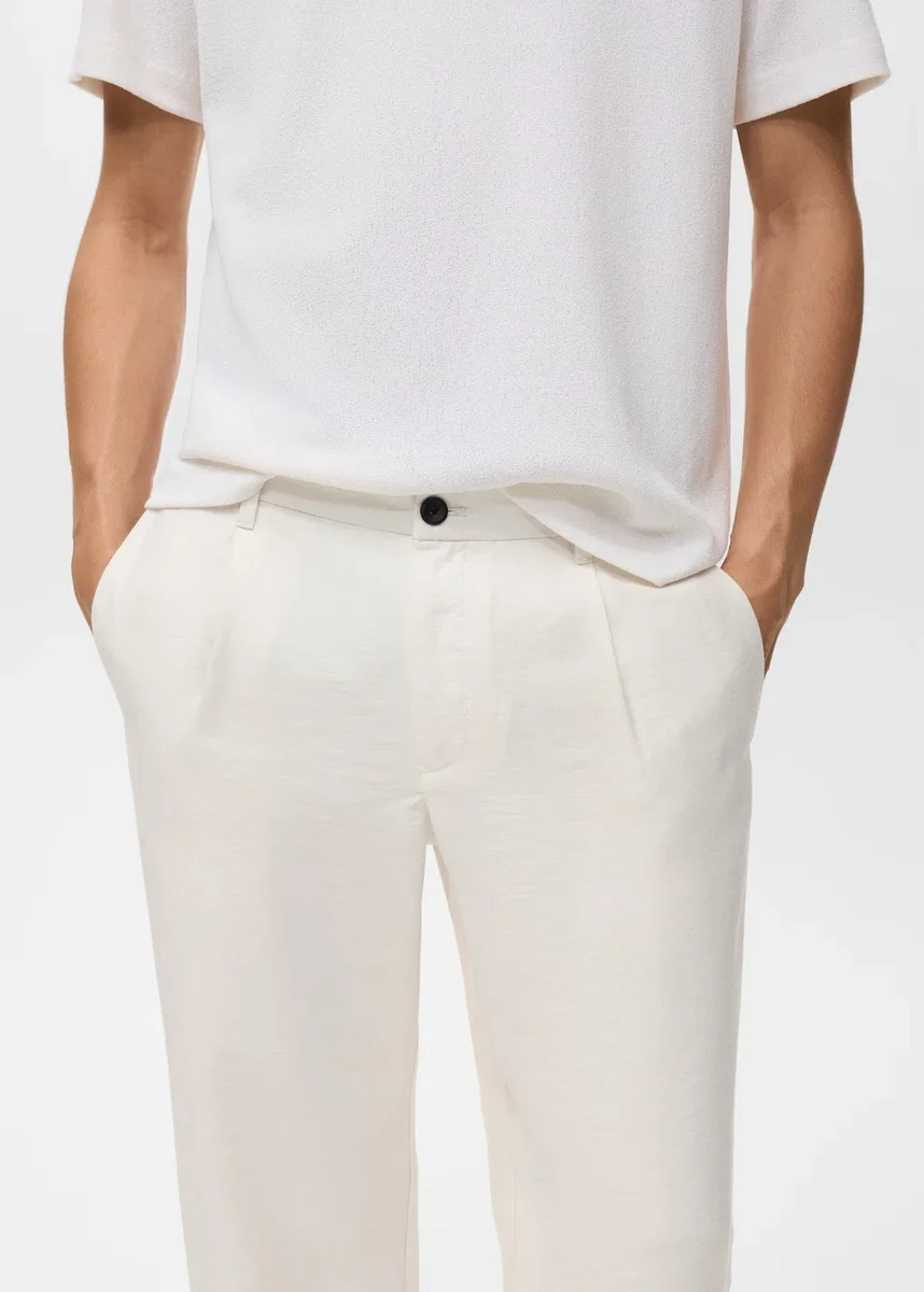 Rovný střih. Přední detaily se záhyby. Poutka na opasek. Zapínání na zip a knoflík vpředu. Dvě přední kapsy. Dvě zadní kapsy s knoflíkem. Black Friday