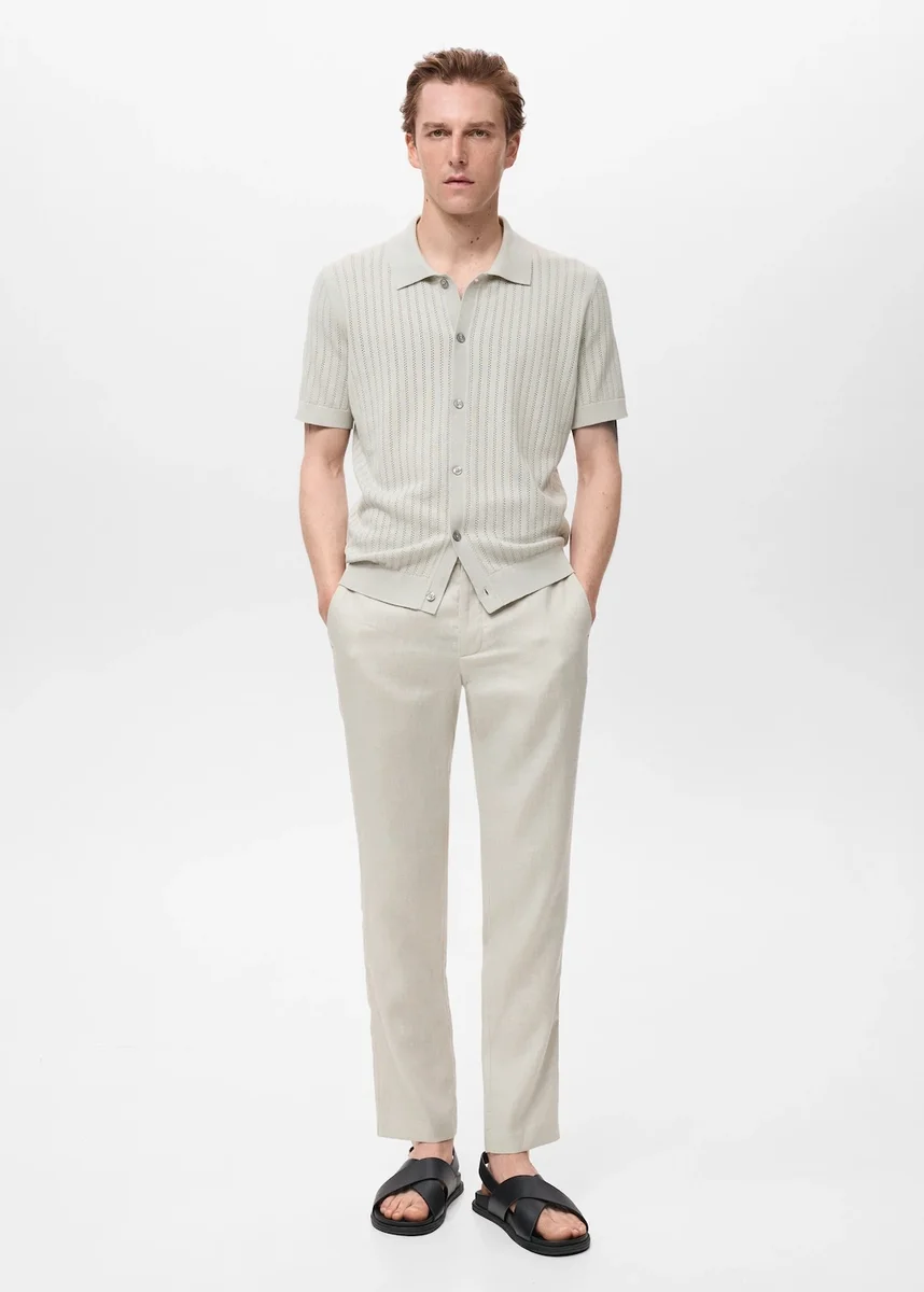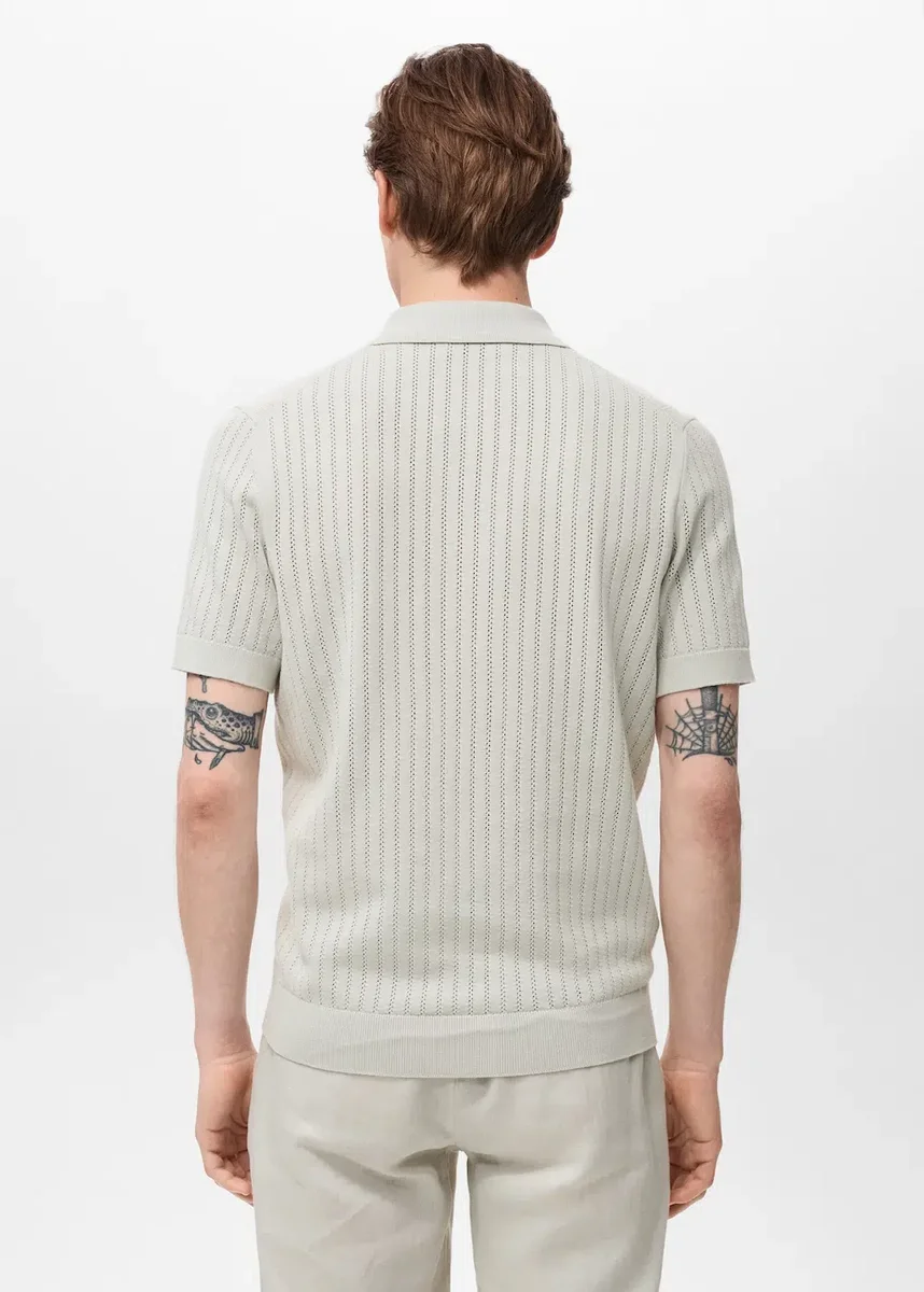 Rovný střih. 100% bavlna. Jemný úplet s krajkovými detaily. Košilový límec. Krátké rukávy. Žebrovaný límec, rukávy a lem. Zapínání na knoflíky vpředu.