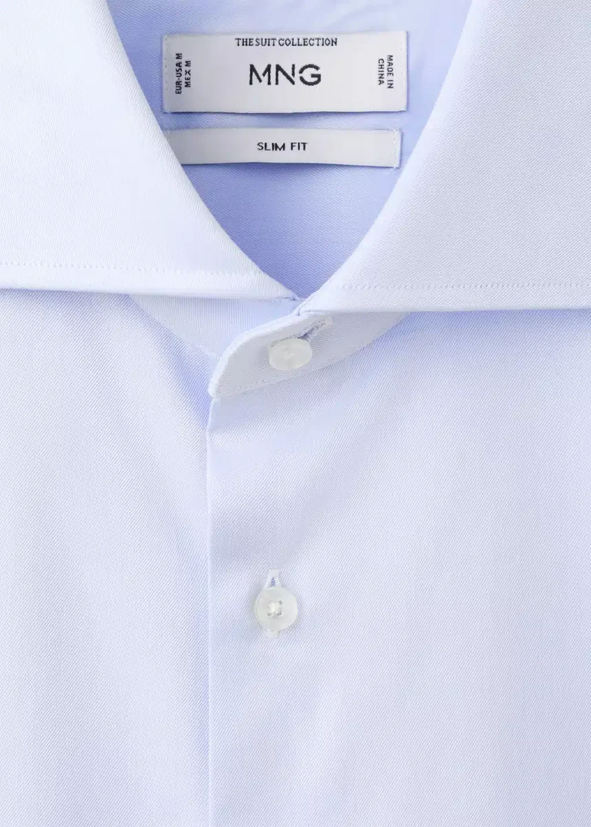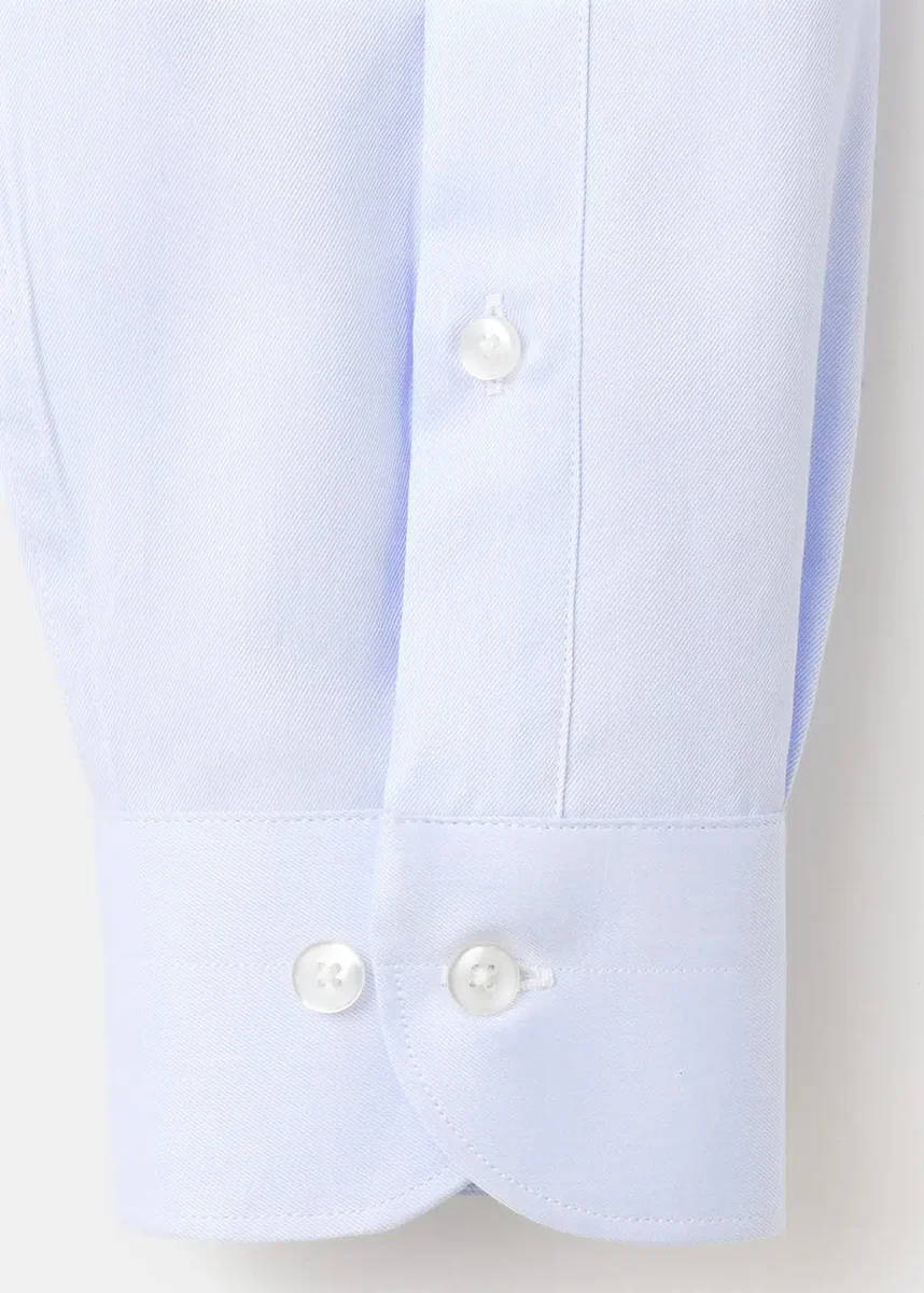 Úzký střih. Bavlněný kepr. Rozparkový límec. Manžety na knoflíky. Zaoblený spodní lem. Zapínání na knoflíky vpředu.
