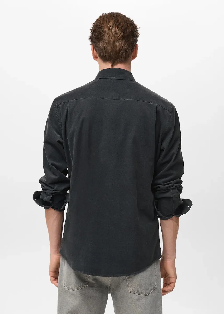 Klasický střih. 100% bavlna. Mikrokord. Límec na knoflíky. Zapínání na knoflíky vpředu. Dlouhé rukávy s manžetami na knoflíky. Zaoblený spodní lem.