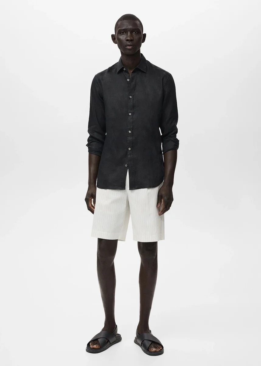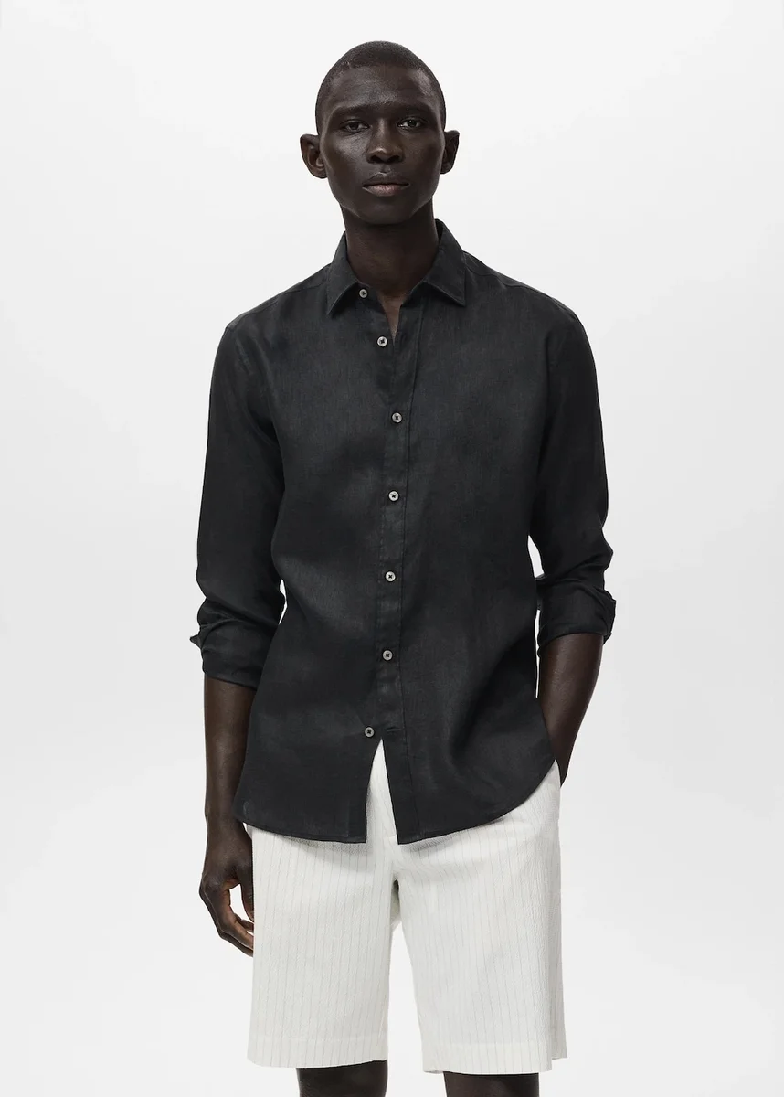 Regular fit. 100 % lněná tkanina. Košilový límec. Zapínání na knoflíky vpředu. Dlouhé rukávy s manžetami na knoflíky. Zadní detail se záševkem. Zaoblený lem. Světle modrá barva je exkluzivně k dostání online. Model v porcelánově modré barvě je exkluzivně k dostání online.