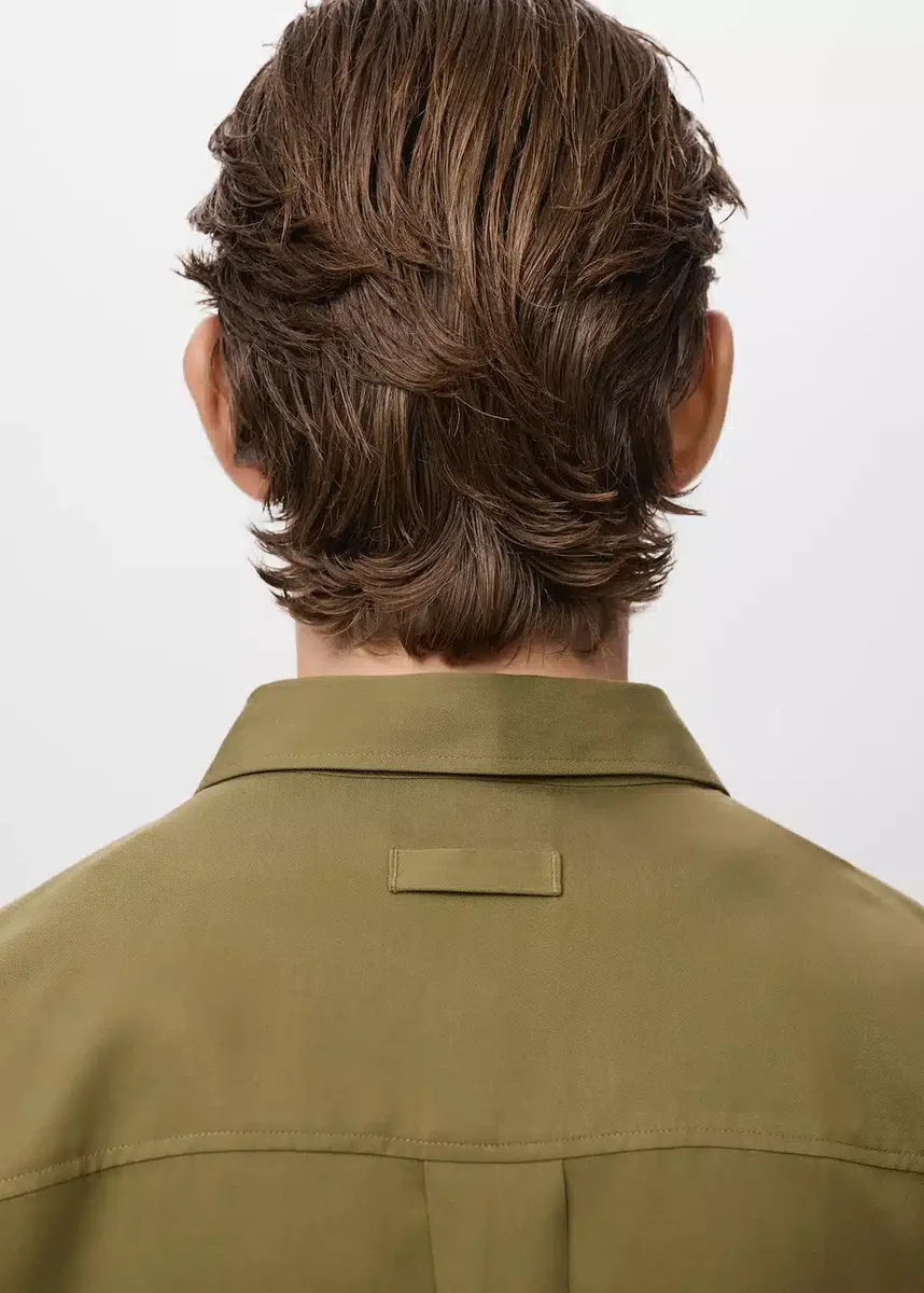 Regular fit. 100% lyocell. Košilový límec. Dlouhé rukávy s manžetami na knoflíky. Nášivná kapsa na hrudi. Zapínání na knoflíky vpředu. Zaoblený lem.