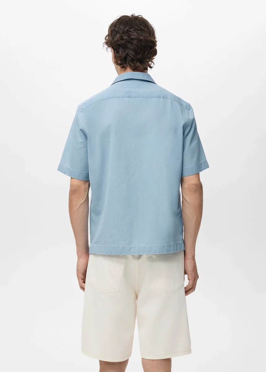 Košile s krátkými rukávy. 100% bavlna. Bowlingový límec. Zapínání na knoflíky vpředu. Rovný lem s bočními rozparky. Black Friday.
