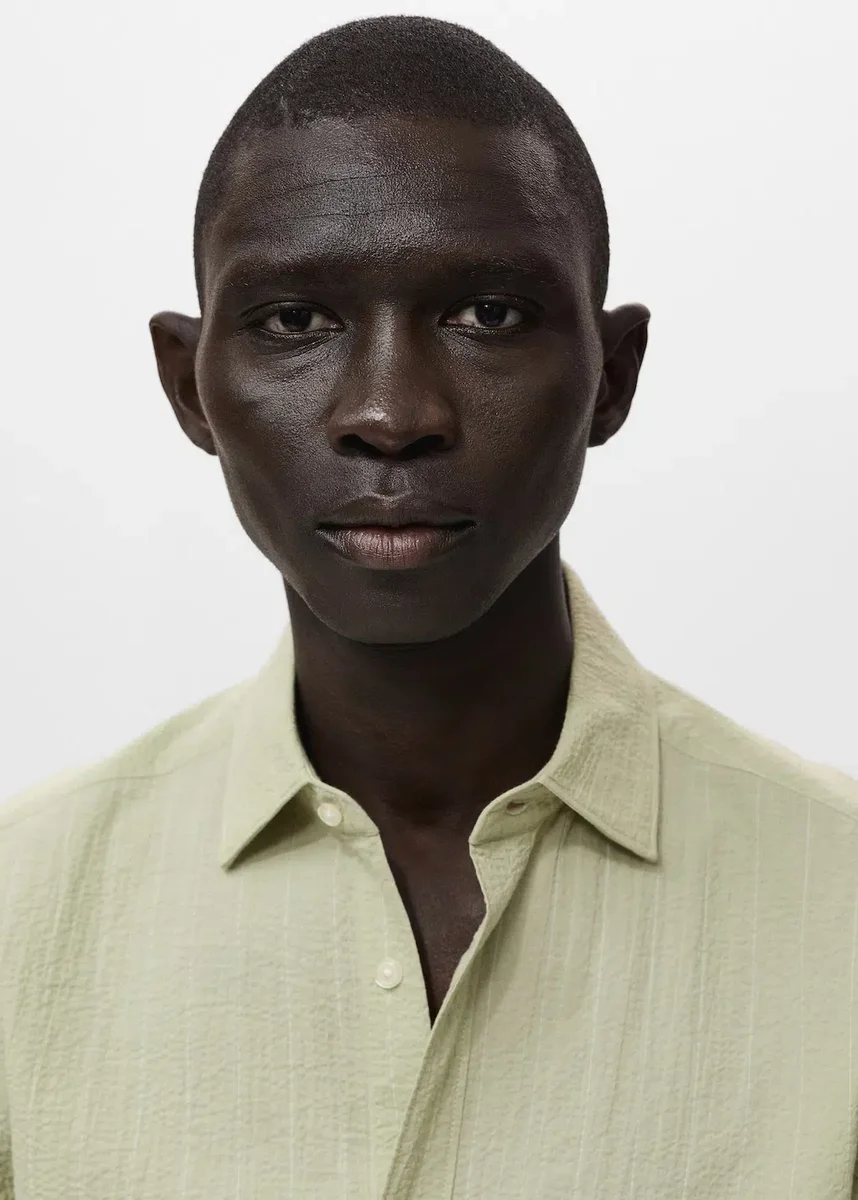Bavlněná tkanina. Regular střih. Texturovaná. Regular střih. Pruhovaný potisk. Košilový límec. Dlouhé rukávy s nafouknutými manžetami. Zapínání na knoflíky vpředu.