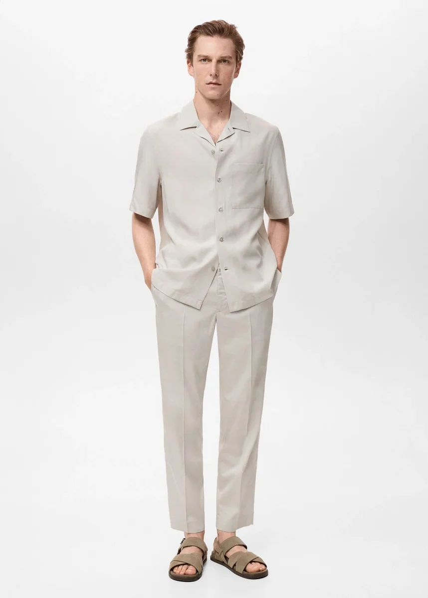 Regular fit. Bowlingový límec. Zapínání na knoflíky vpředu. Krátké rukávy. Nášivková kapsa na hrudi. Rovný lem. Lyocellová tkanina.