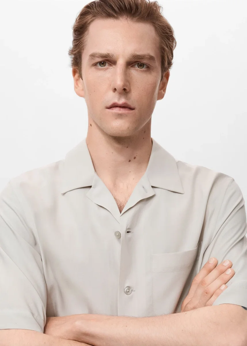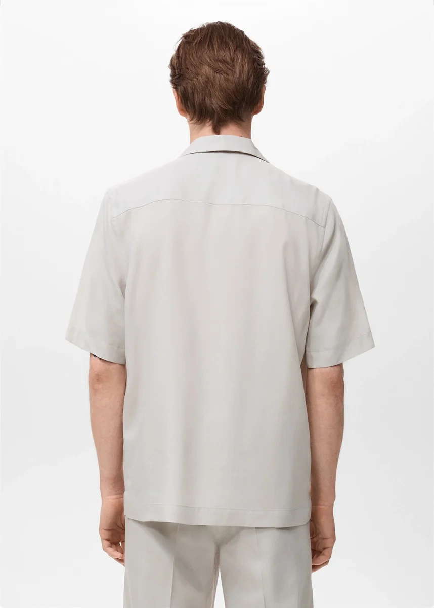 Regular fit. Bowlingový límec. Zapínání na knoflíky vpředu. Krátký rukáv. Nášivková kapsa na hrudi. Rovný lem. Lyocellová tkanina