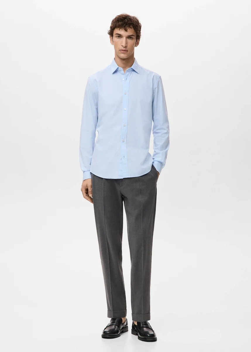 100% bavlna. Regular fit. Dlouhé rukávy s manžetami na knoflíky. Zapínání na knoflíky vpředu. Košilový límec.