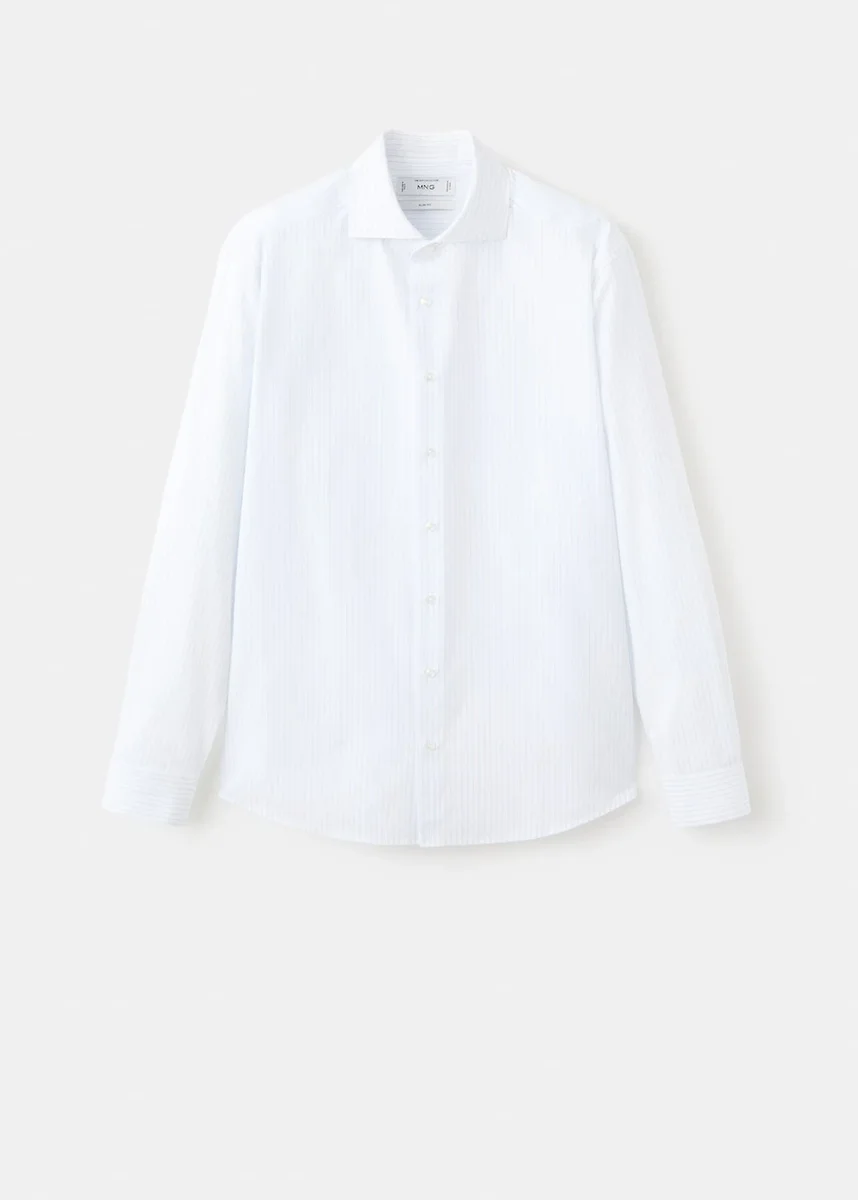 Slim fit. 100% bavlna. Jemné pruhy. Klasický límec. Dlouhé rukávy s manžetami na knoflíky. Zapínání na knoflíky