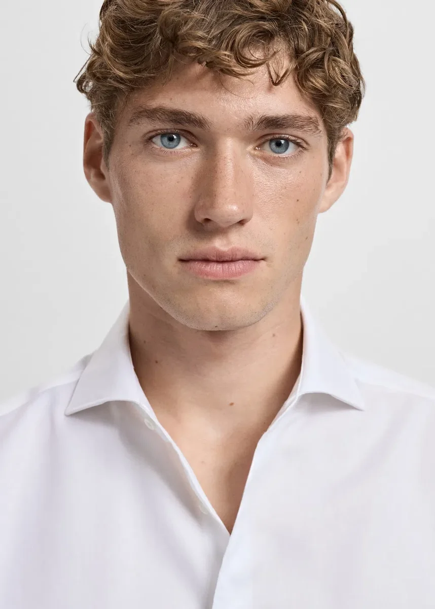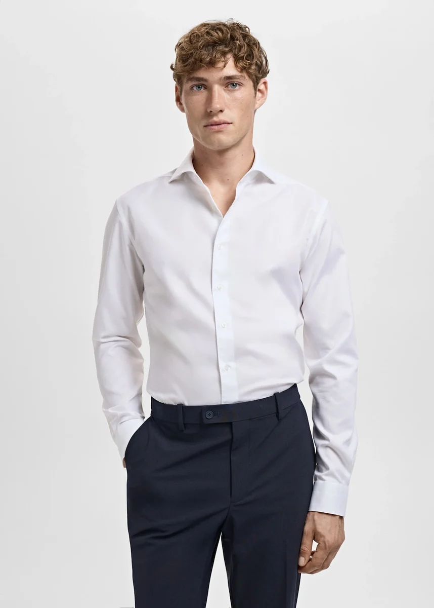 Úzký střih. 100% bavlna. Kolekce Tailoring. Klasický límec. Zapínání na knoflíky vpředu. Dlouhé rukávy s manžetami na knoflíky. Zaoblený lem.
