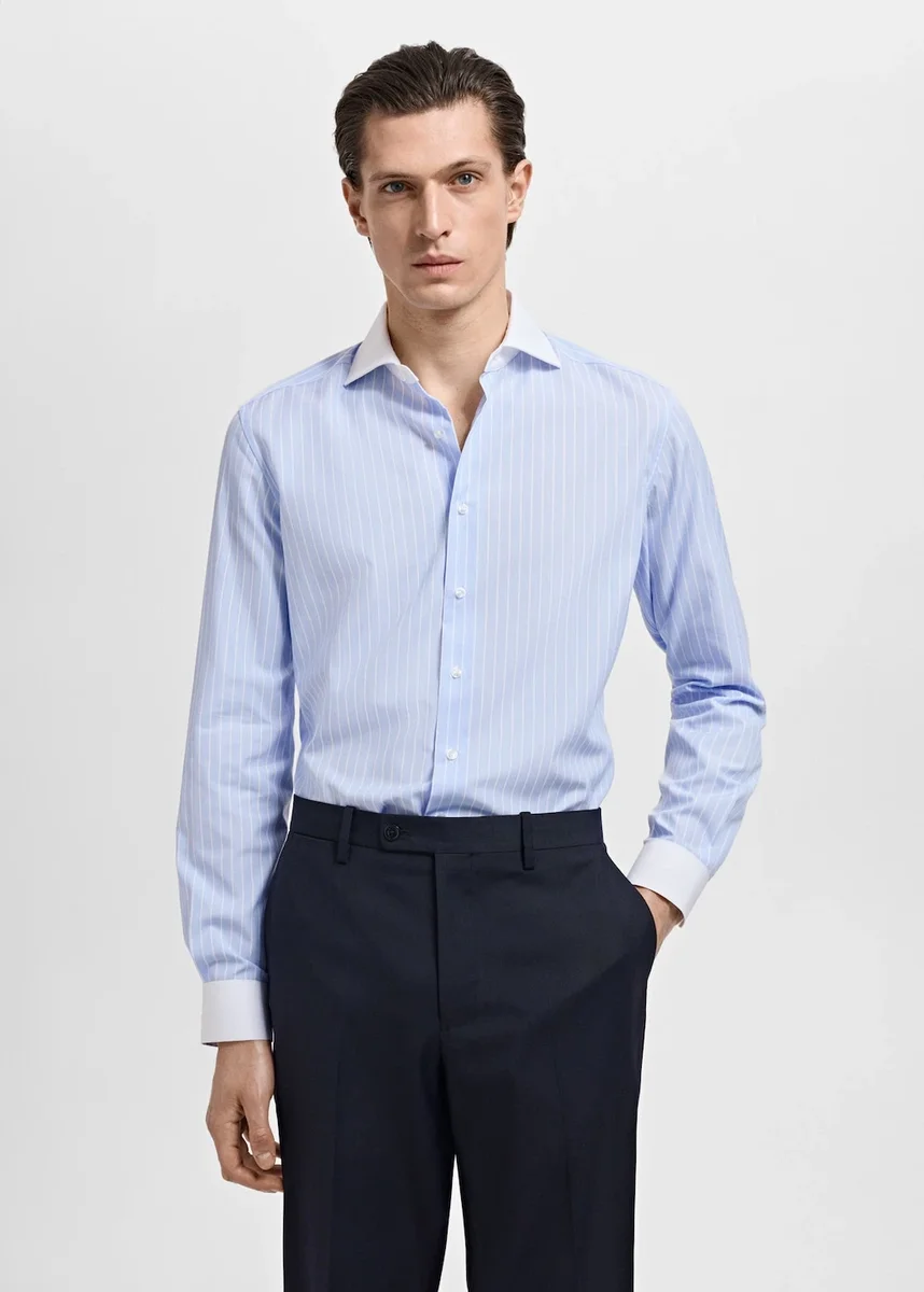 Slim fit. 100 % bavlna. Pruhovaný potisk. Rozložený límec. Zapínání na knoflíky vpředu. Dlouhé rukávy s manžetami na knoflíky.