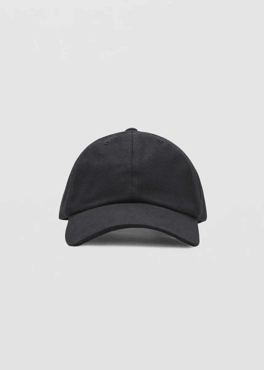 100% bavlna. S kšiltem. Nastavitelná spona vzadu