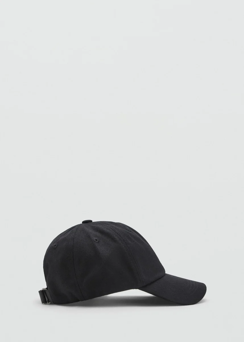 100% bavlna. S kšiltem. Nastavitelná spona vzadu.