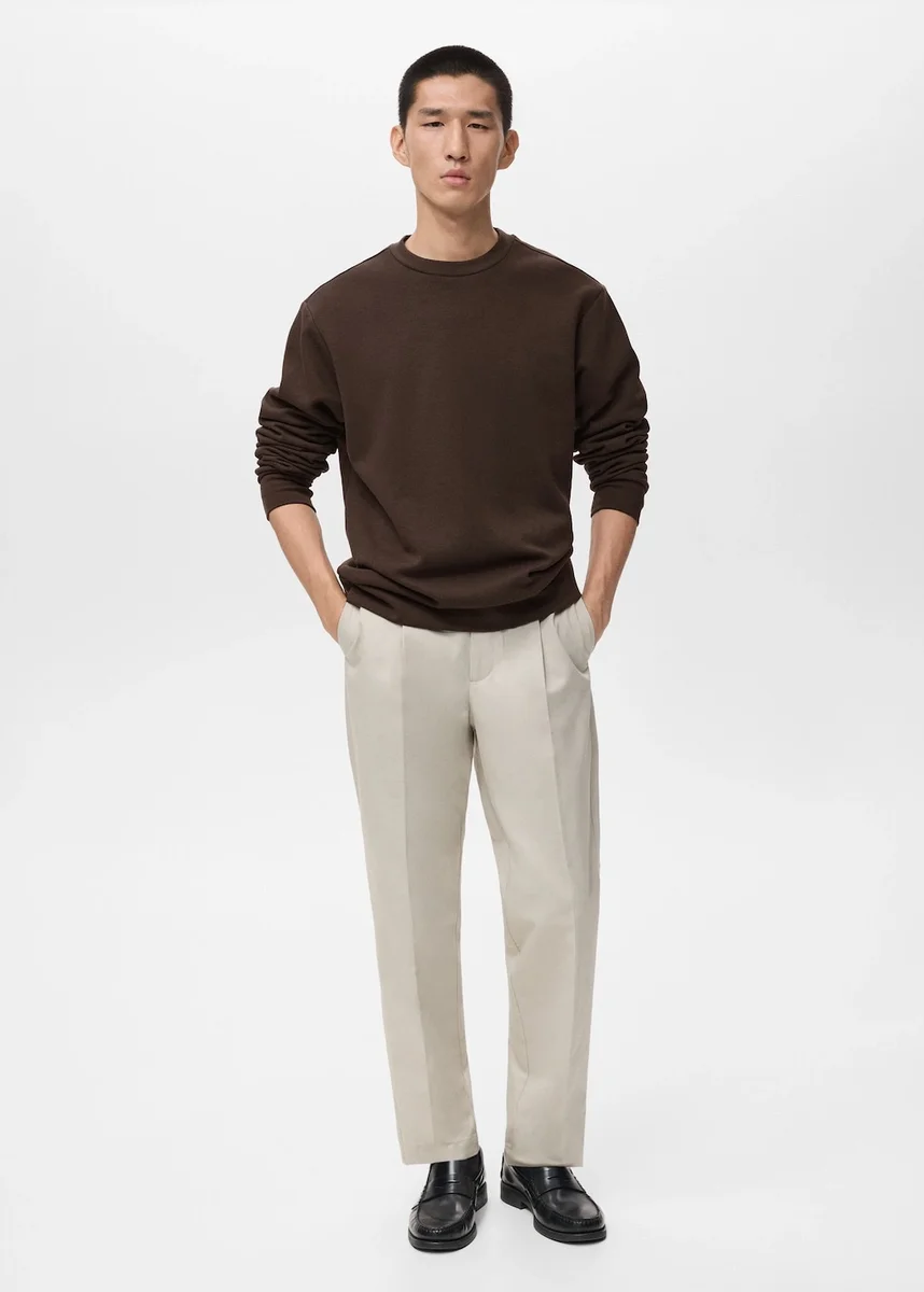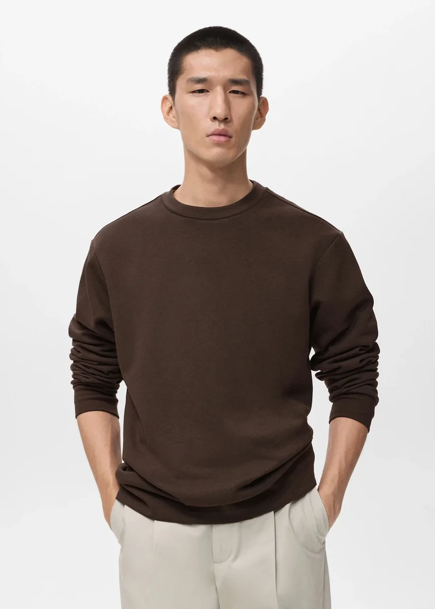 Hnědá barva je k dispozici výhradně online. Směs bavlny. Regular fit. Kulatý výstřih. Dlouhé rukávy s elastickými manžetami. Žebrovaný lem u krku, manžet a spodního okraje.