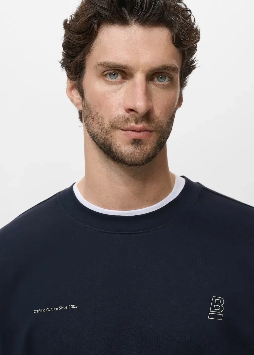 100% bavlna. Regular fit. Prošívaná bavlněná podšívka. Text tištěný na zadní straně. Kulatý výstřih. Žebrované lemy.