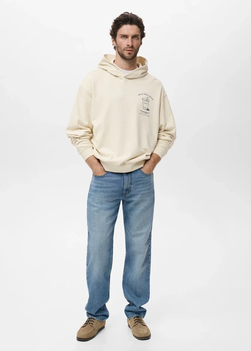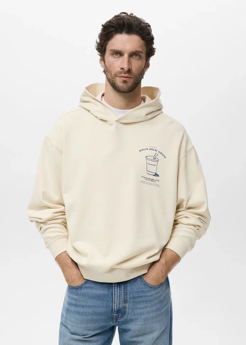 100% bavlna. Regular fit. S kapucí. Grafický potisk na hrudi. Dlouhé rukávy s elastickými manžetami. Žebrované manžety a lem.